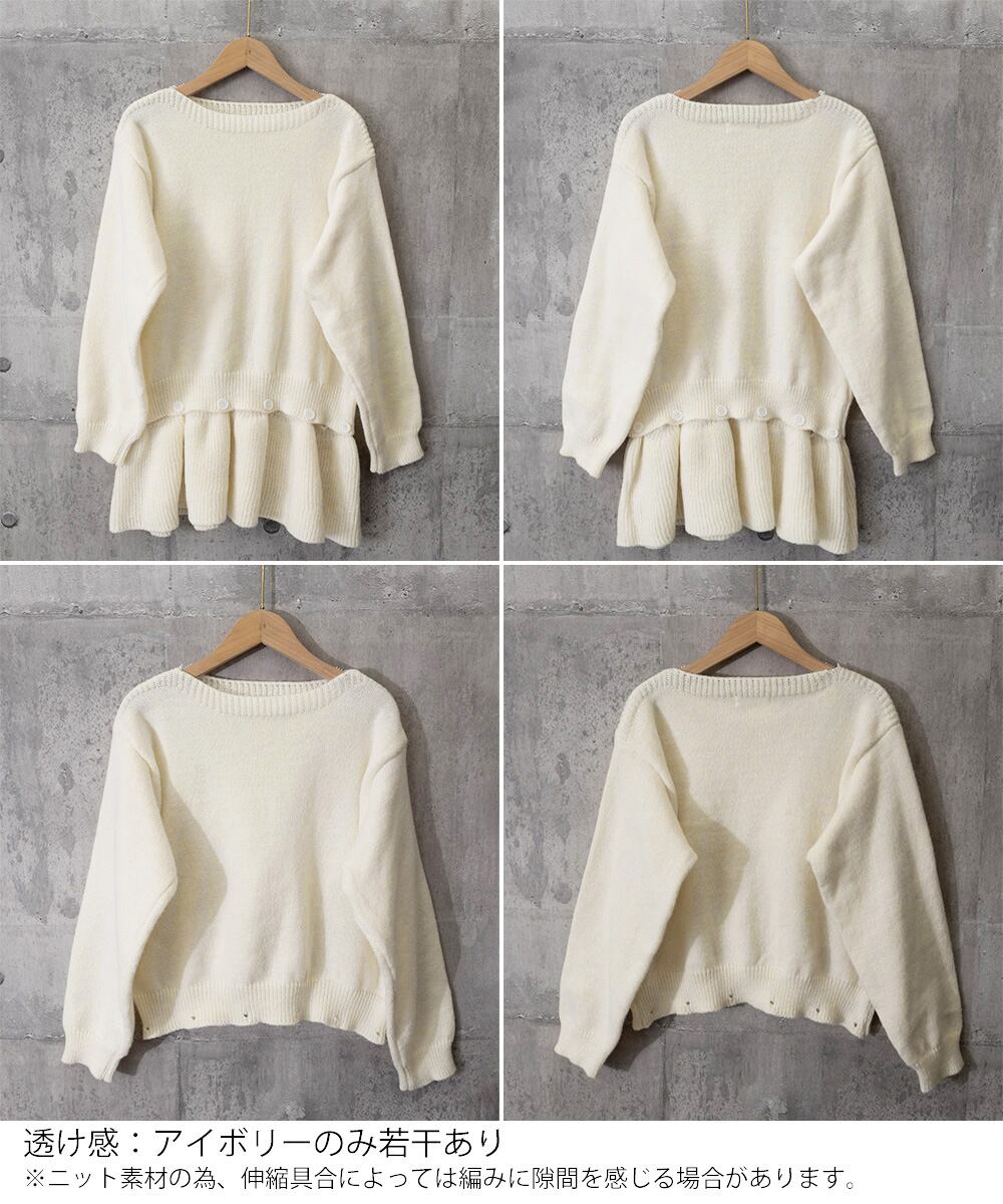 秋冬はもちろん、初春まで長く使える裾ペプラム仕様のニットトップス。