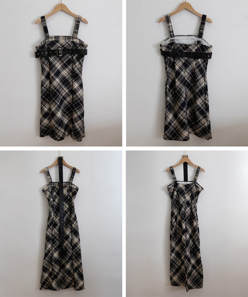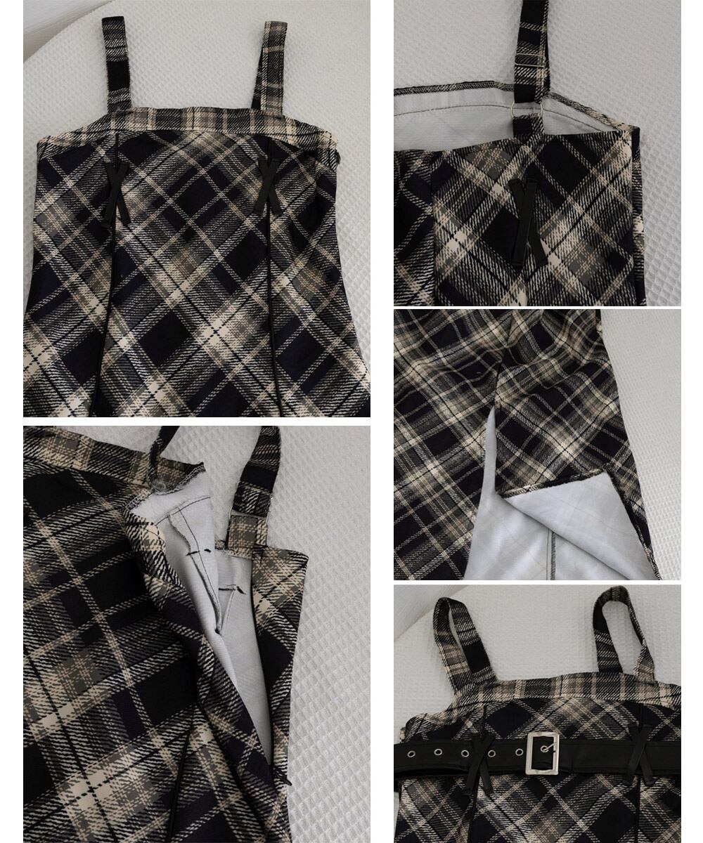 【日本倉庫からの発送】 チェック柄サスペンダーワンピースベルト付 #[2JIAYIXI-001_26100]【送料込み】【260130】