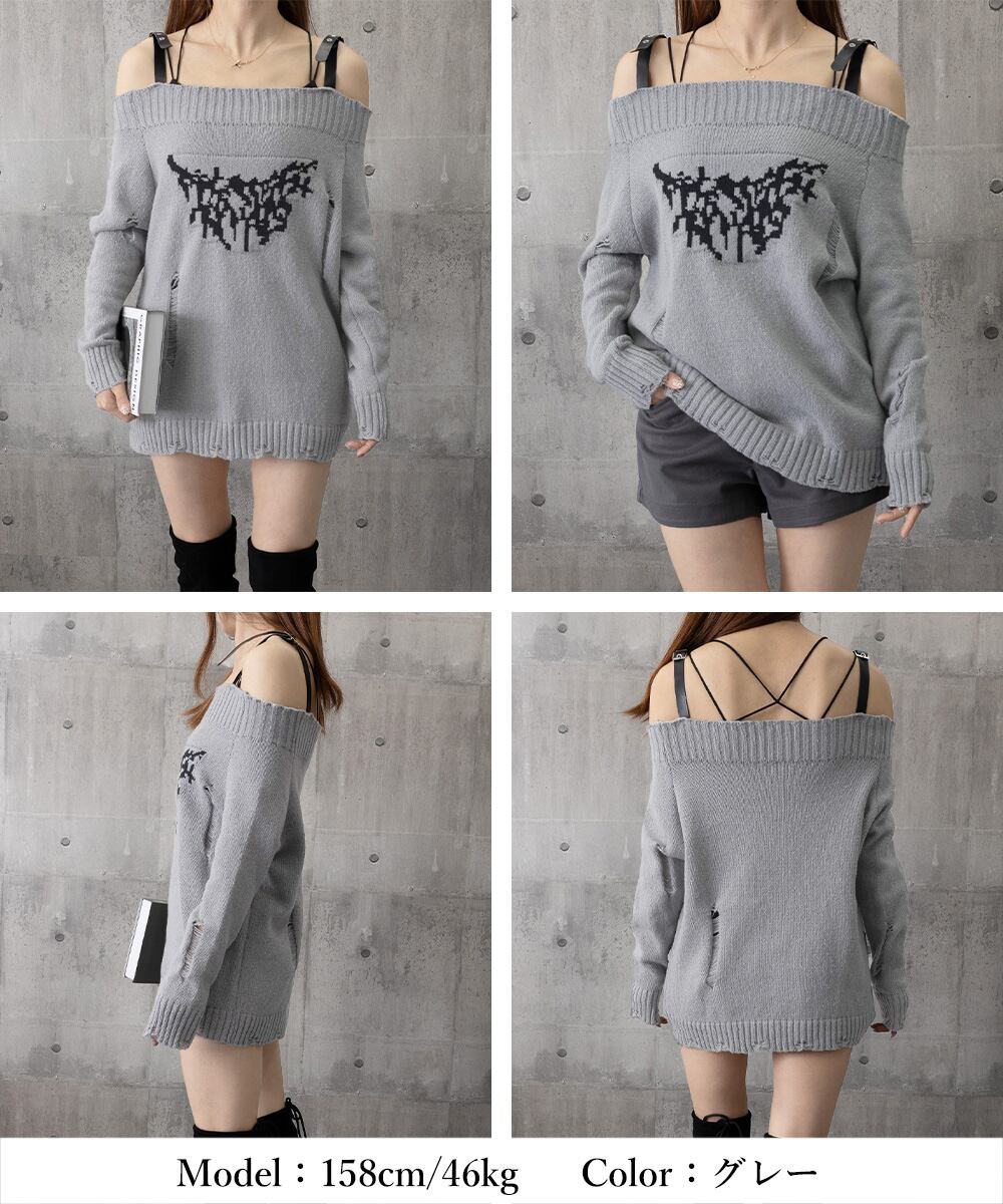 【日本倉庫からの発送】 オフショルニットミニワンピース ダメージ #[2JIAHAO-001_19300]【送料込み】【260130】