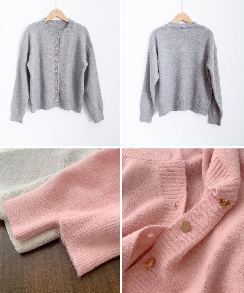 カラーハートボタンニットトップス クルーネックニットセーターきれいめカジュアル 長袖ニットソー お洒落ニット羽織 着回し