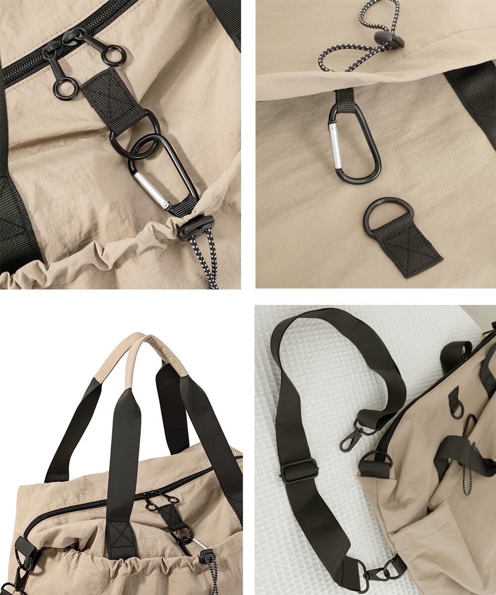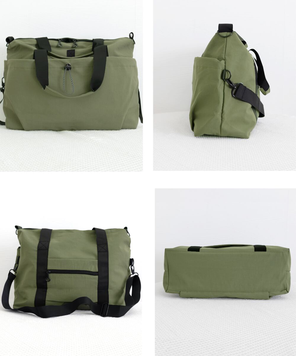取り外し・長さ調節が可能なショルダーベルト付きで、3WAYで使えるボストンバッグ。