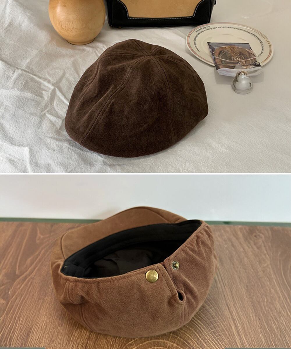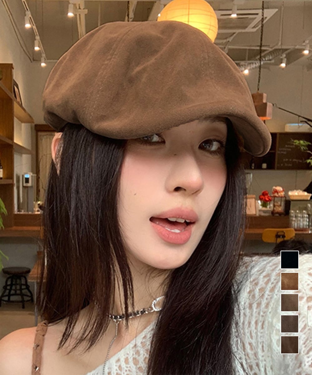 程よい風合いのスエード調ベレー帽。