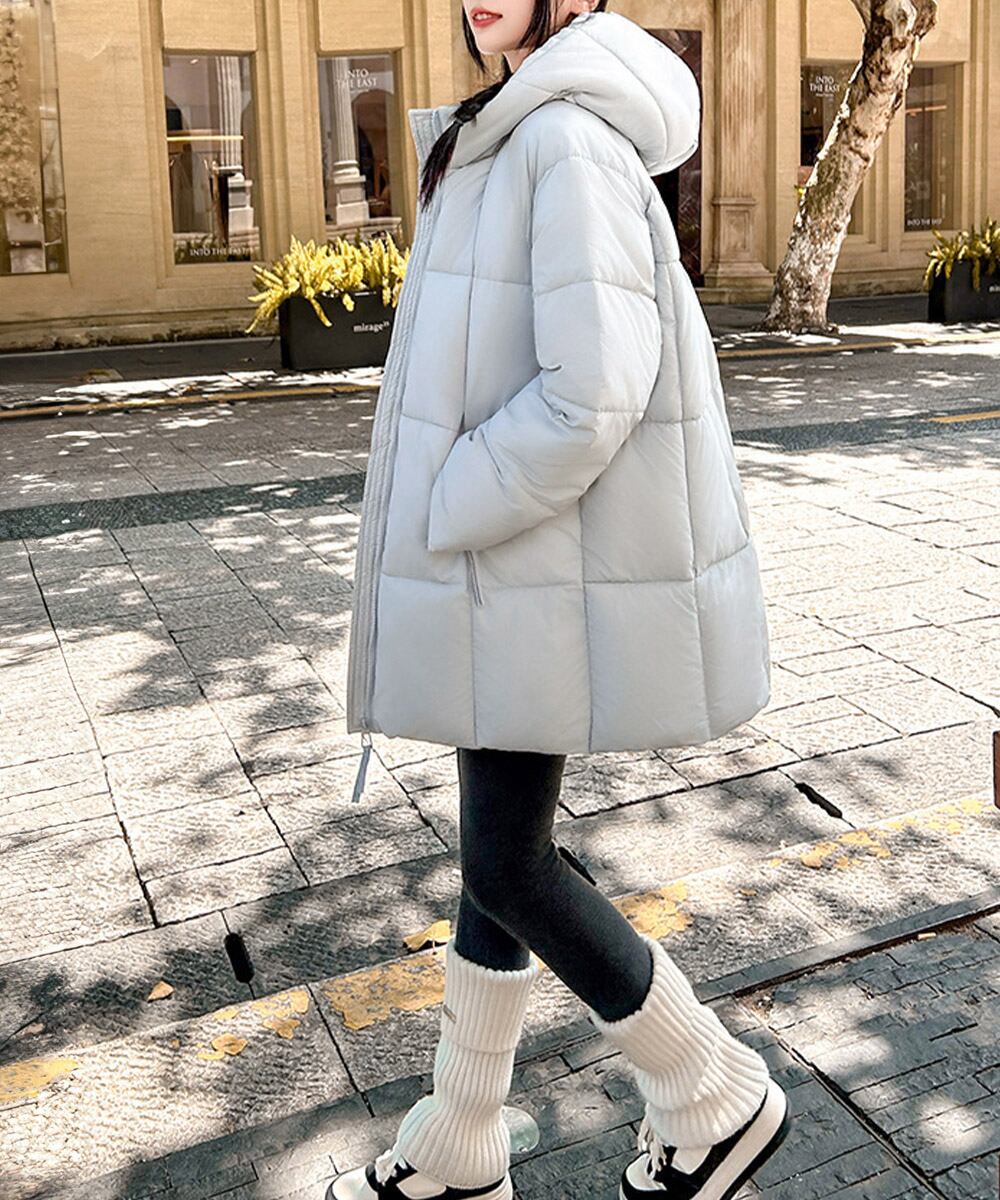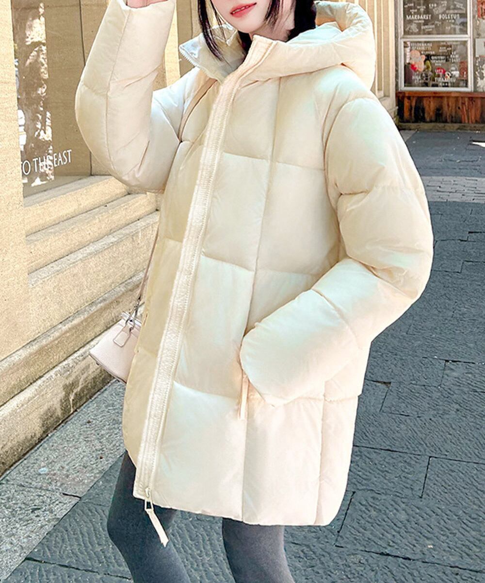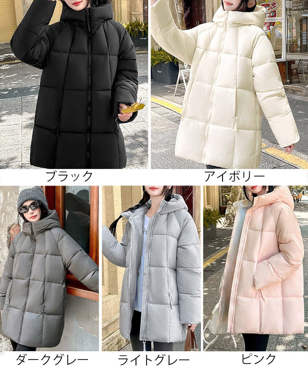 レディース 暖かいエコダウンジャケット 防寒防風フーディアウター 韓国風キルティングジャケットミディアム丈アウター厚手