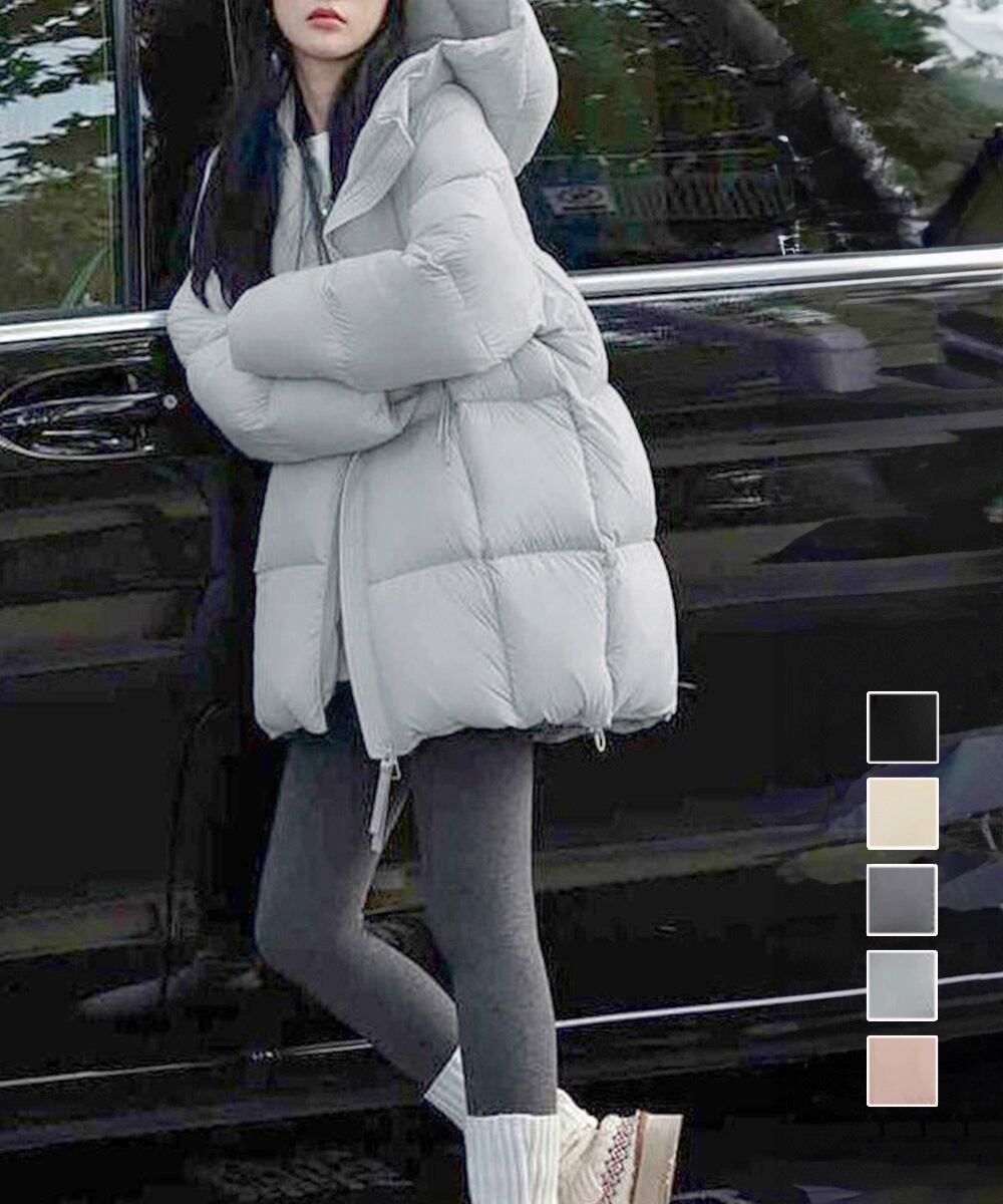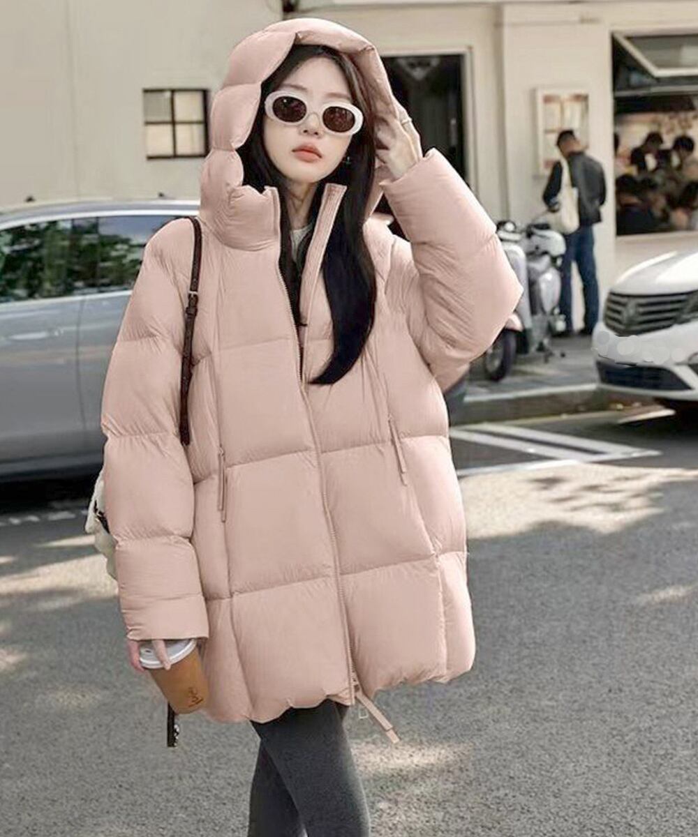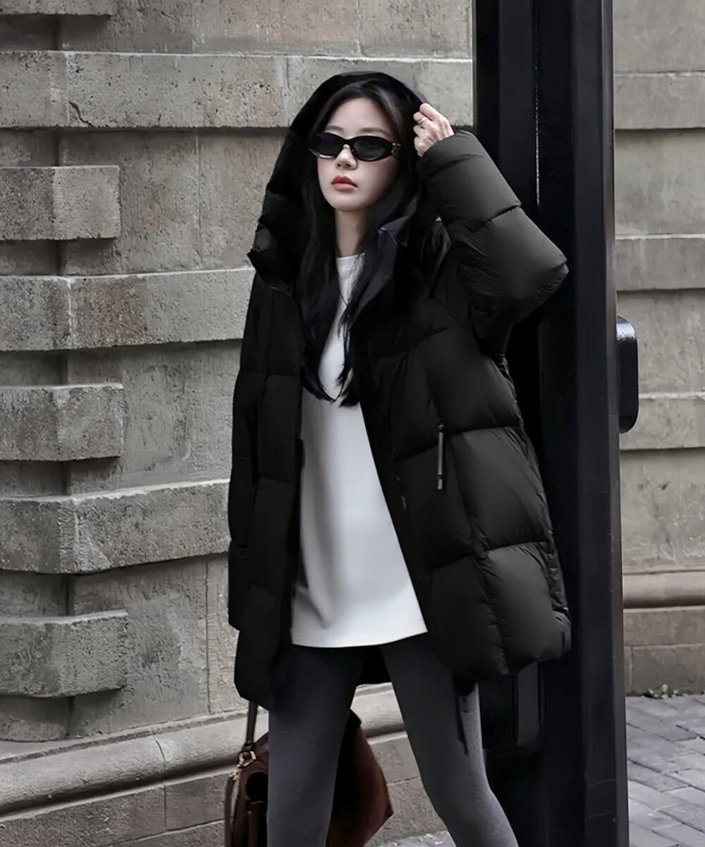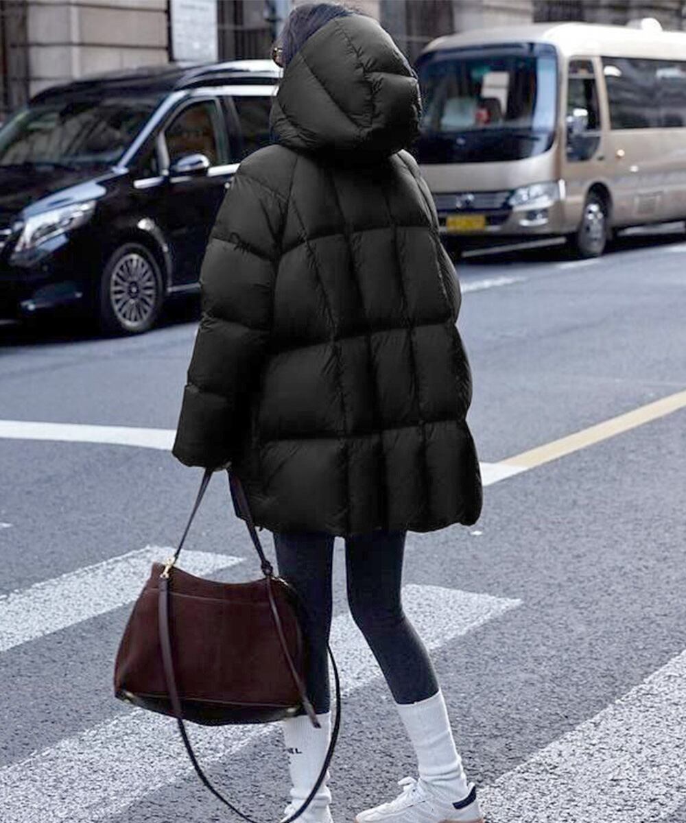 レディース 暖かいエコダウンジャケット 防寒防風フーディアウター 韓国風キルティングジャケットミディアム丈アウター厚手