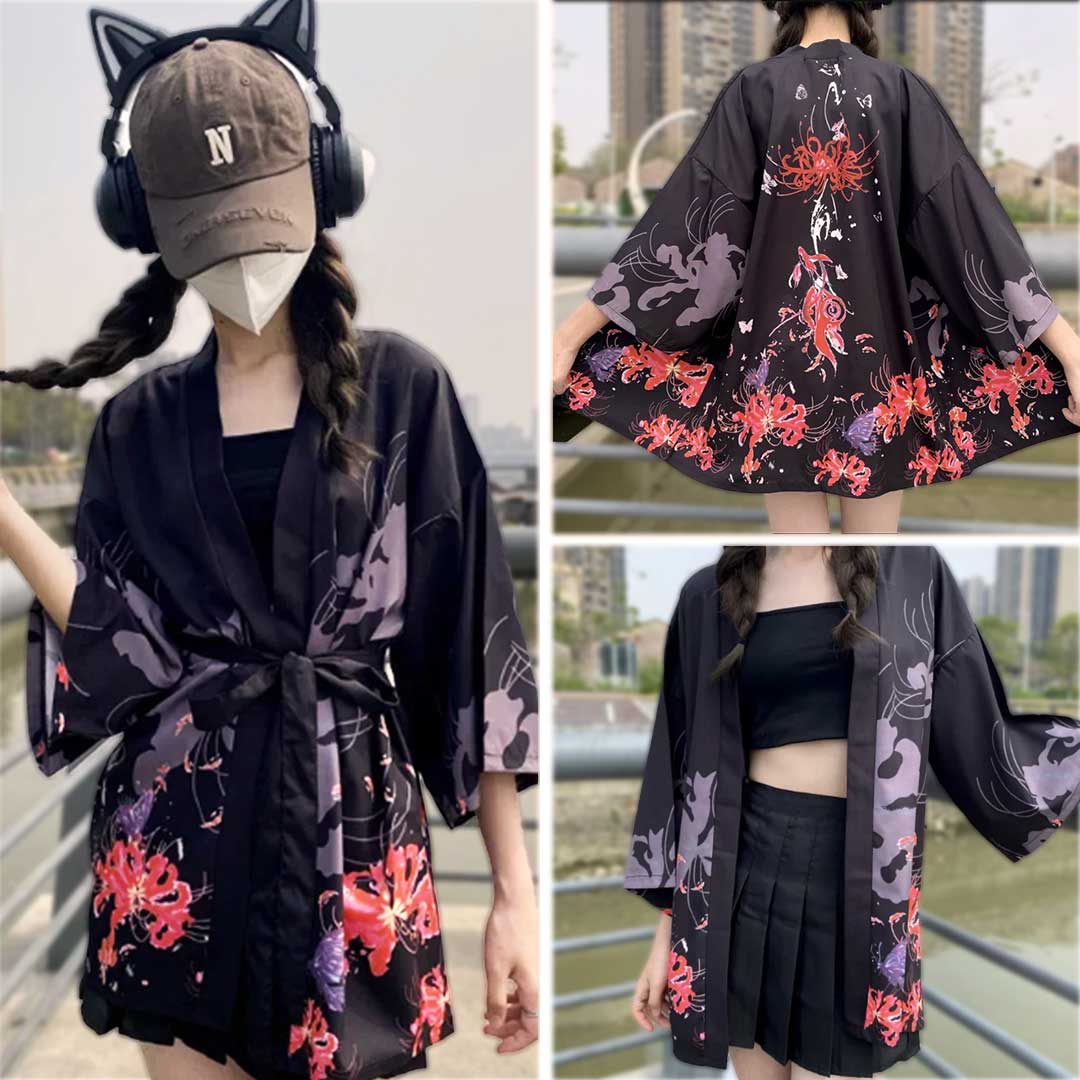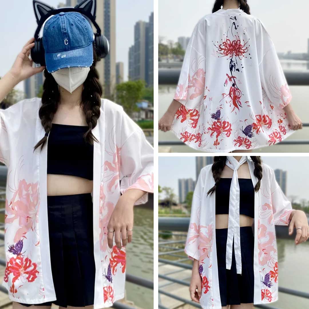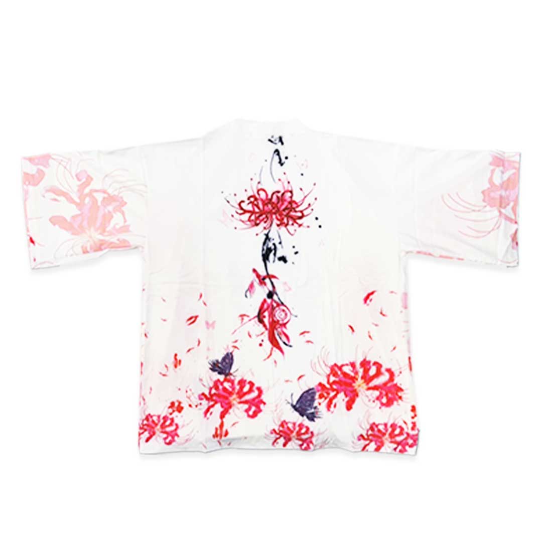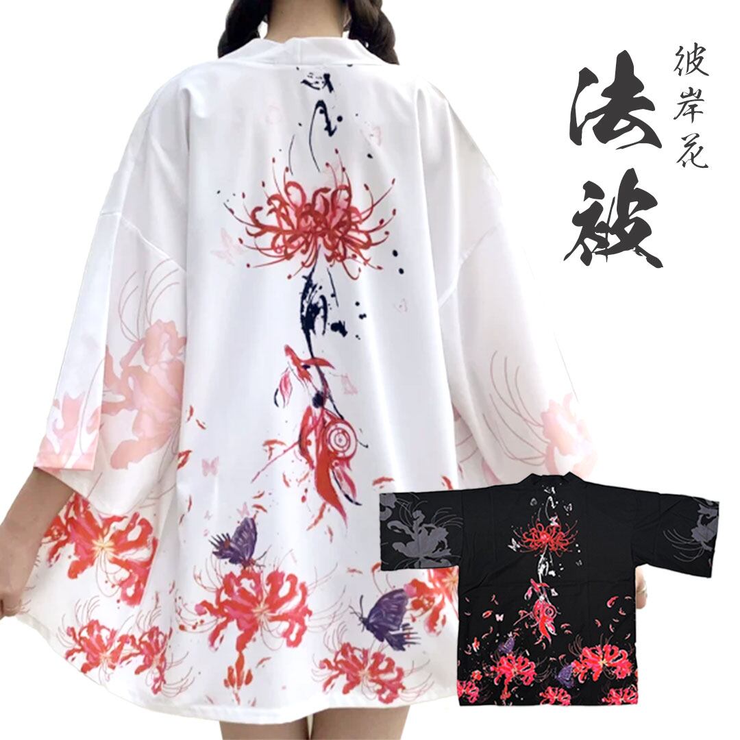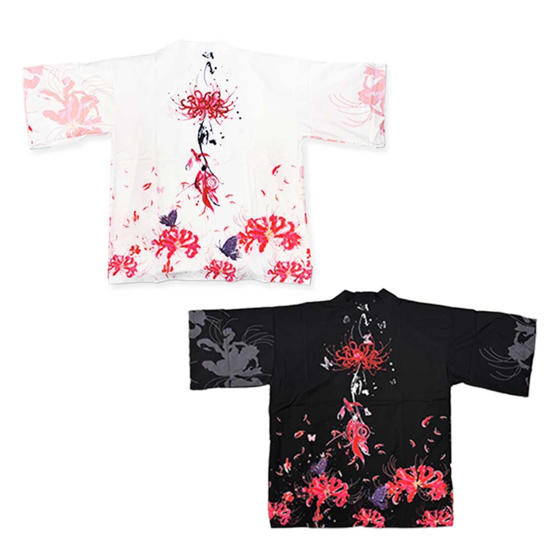 法被 彼岸花と蝶 全2色 ホワイト ブラック 夏祭り 夏恋 寺 神社 羽織り #[20240423-5630_36100]【送料込み】【260131】