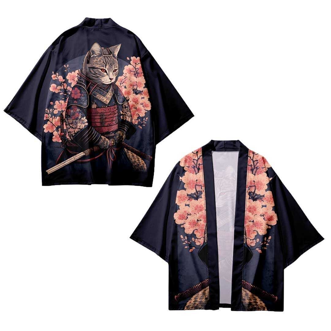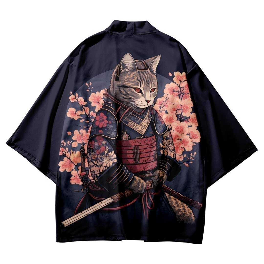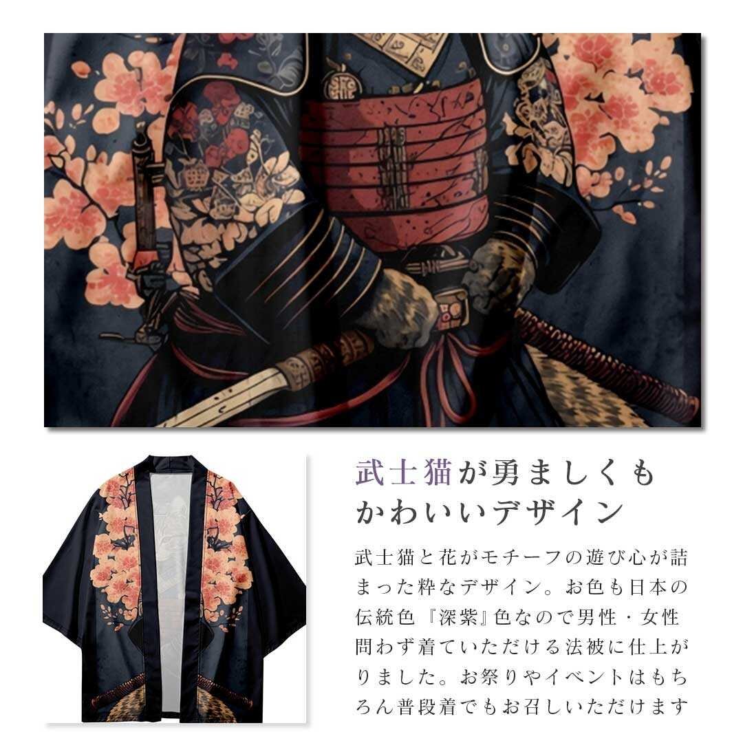 法被 武士猫 ネコ 夏祭り 夏恋 寺 韓国ファッション 神社 羽織り 半纏 #[20240228-4444_31600]【送料込み】【260131】