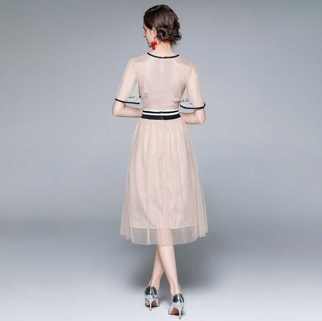 ヨーロッパの雰囲気のドレスでその姿はまるで奔放な貴族。着こなしをより一層美しく魅せる膝丈です。