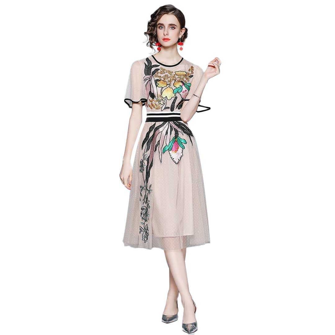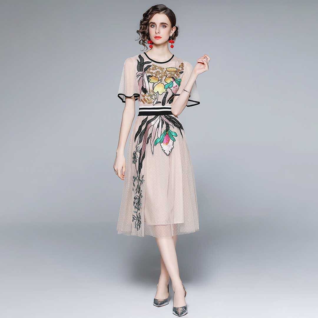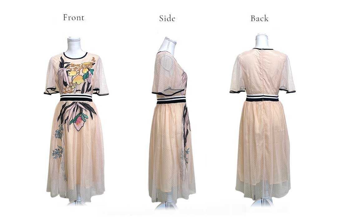 【在庫限り】ワンピース 花刺繍 チュールワンピース ベージュ MサイズorLサイズ フラワー 膝丈 #[20230501-2811_63400]【送料込み】【260131】