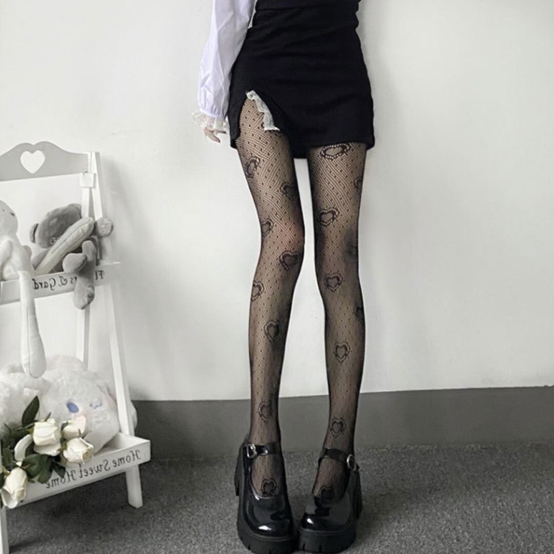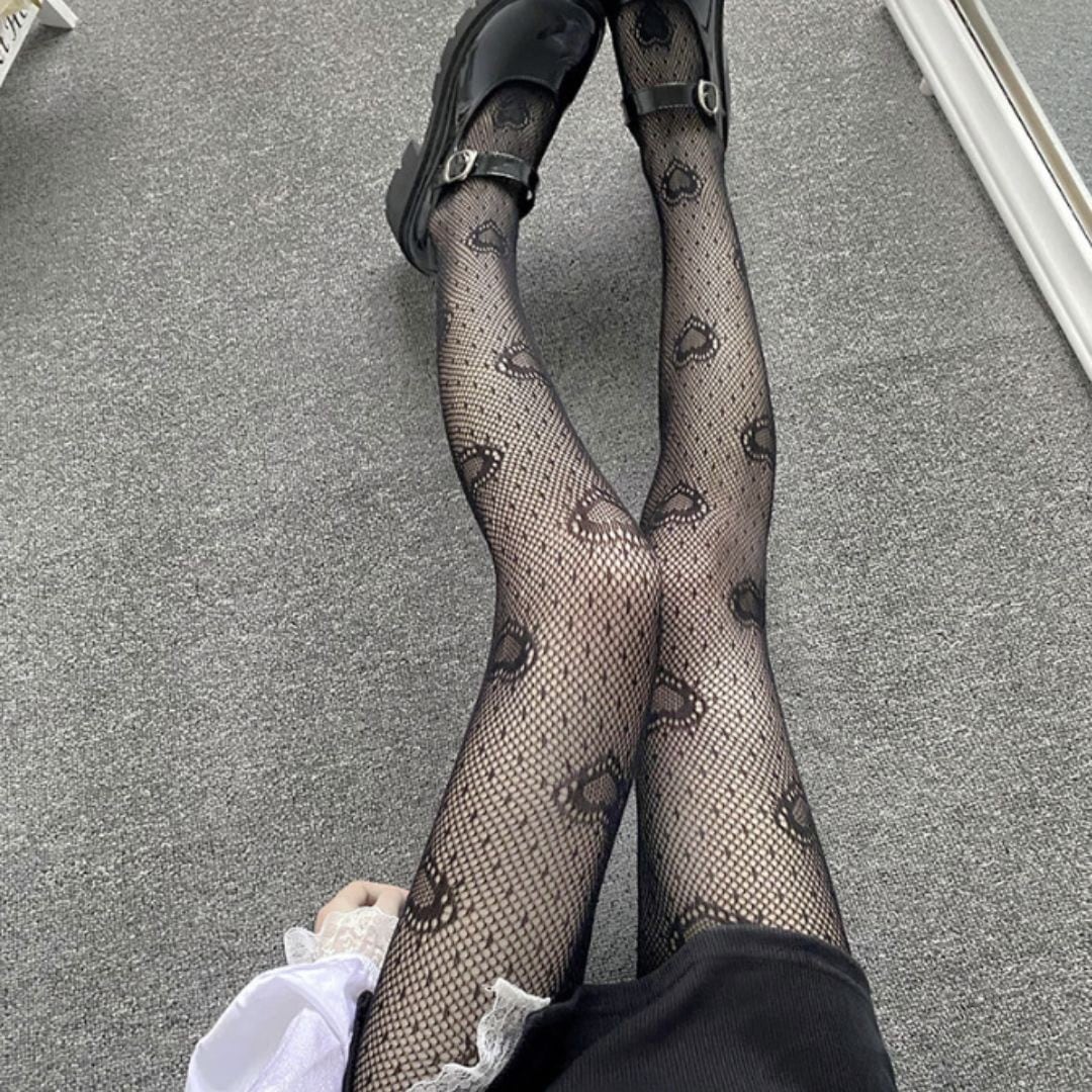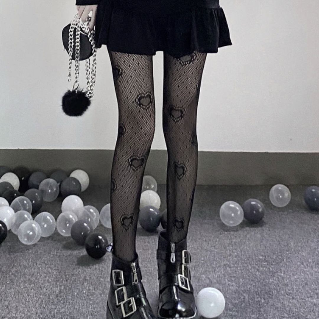 網タイツ ハート柄 ブラック ストッキング タイツ 女性 レディースタイツ レッグウェア 伸縮性抜群