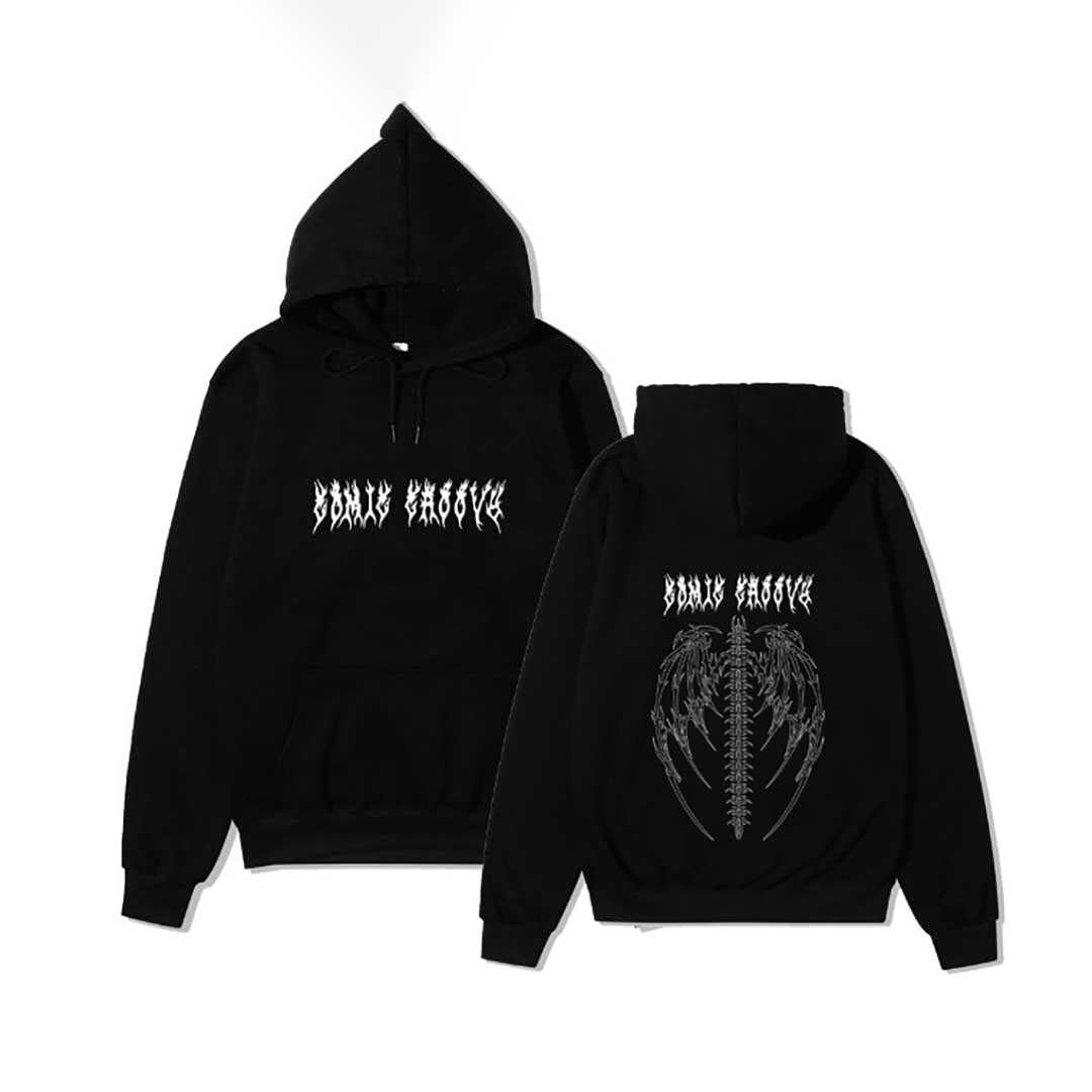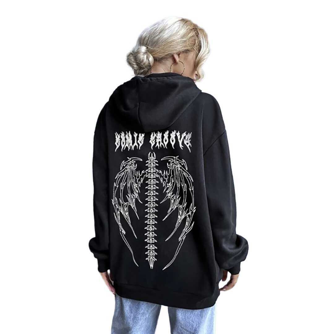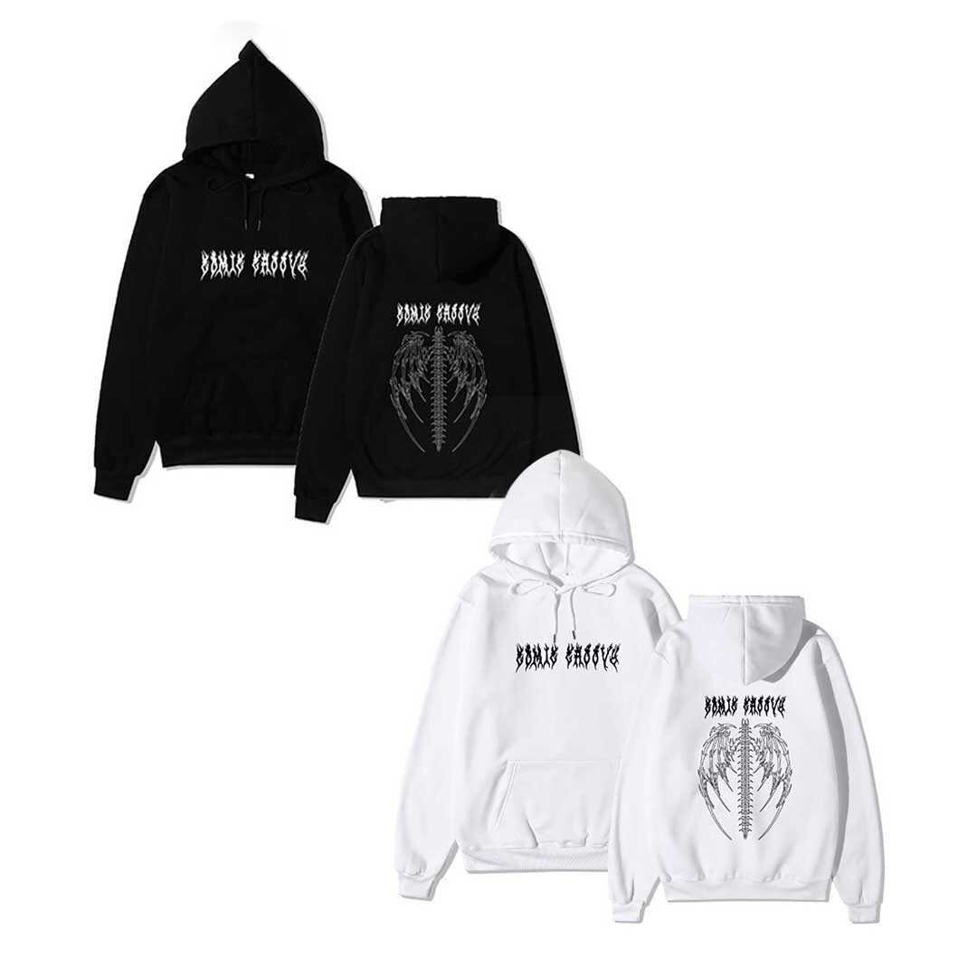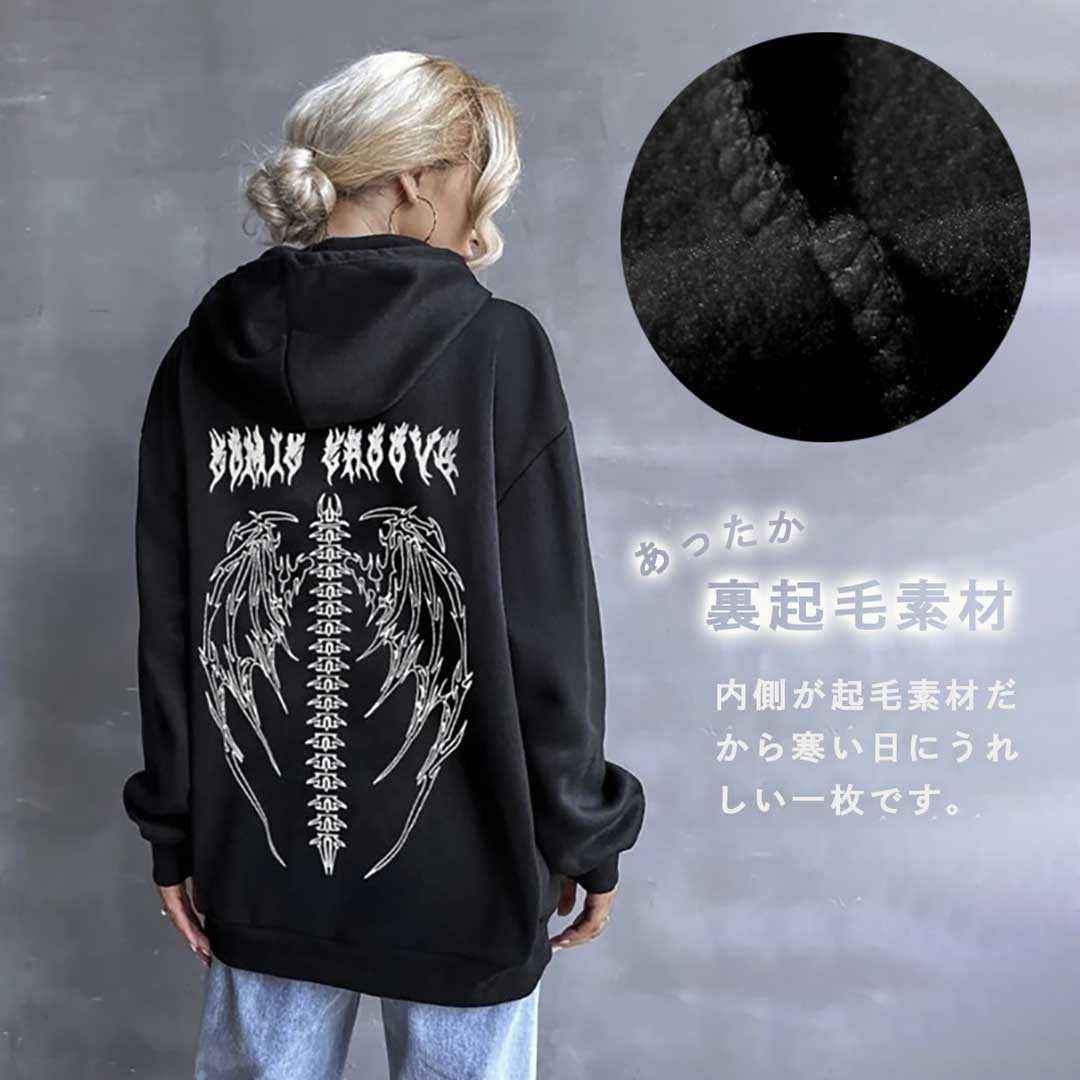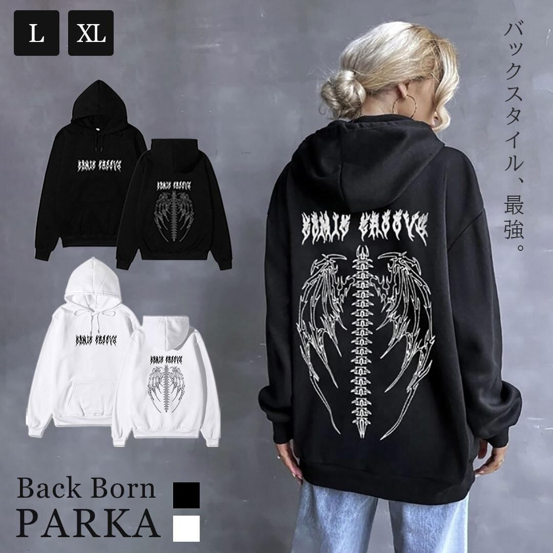【在庫限り】 パーカー 背中 骨 羽根 ブラックorホワイト トップス プルオーバー 韓国 #[20221205-2470_36100]【送料込み】【260131】