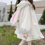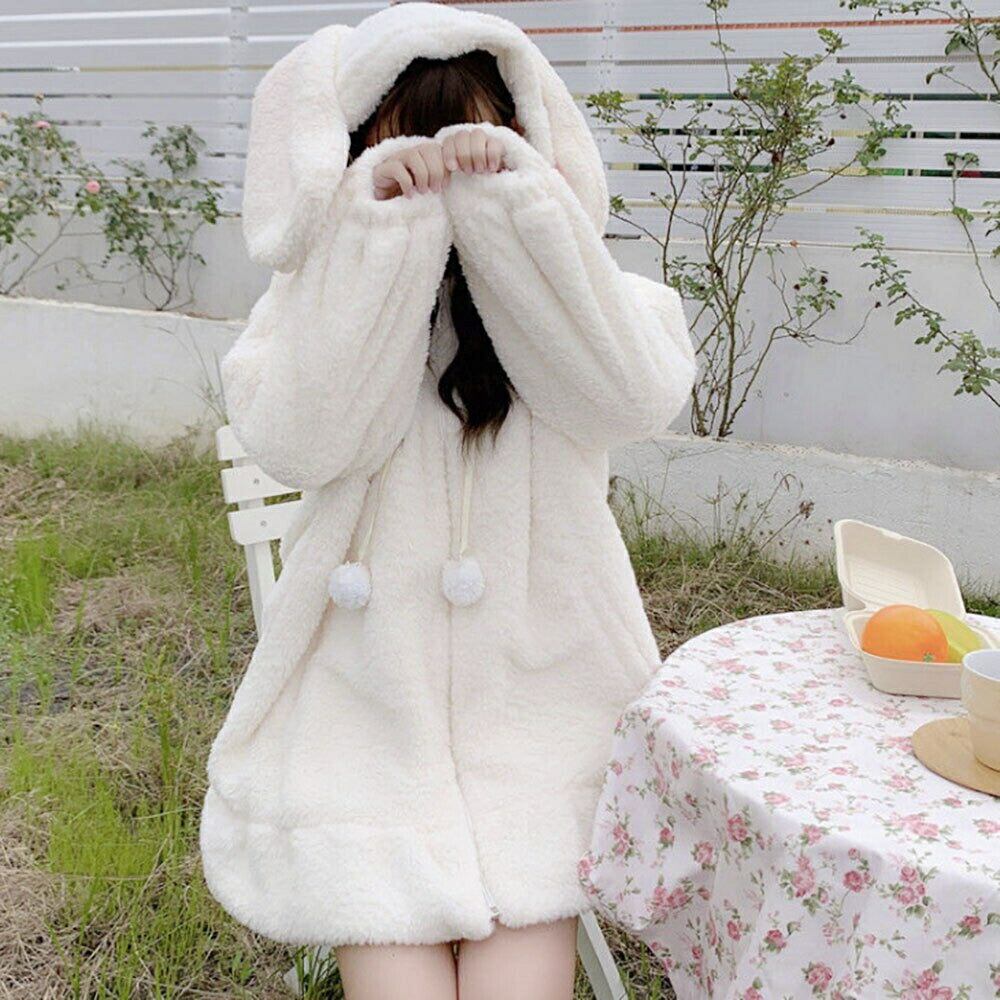 原宿系大きめパーカーでカワイイウサギ耳付き、女性らしい魅力と可愛さを演出でき、暖かさと防寒性も兼ね備えております