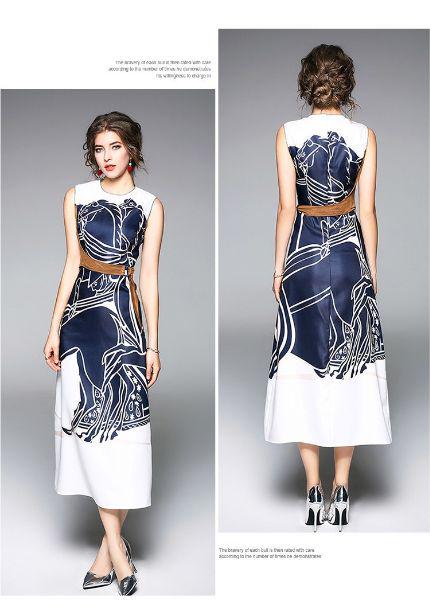 ワンピース ドレス 馬柄 ブルー マキシ 二次会 パーティー ベルト付き #[1-1004-7_63400]【送料込み】【260131】