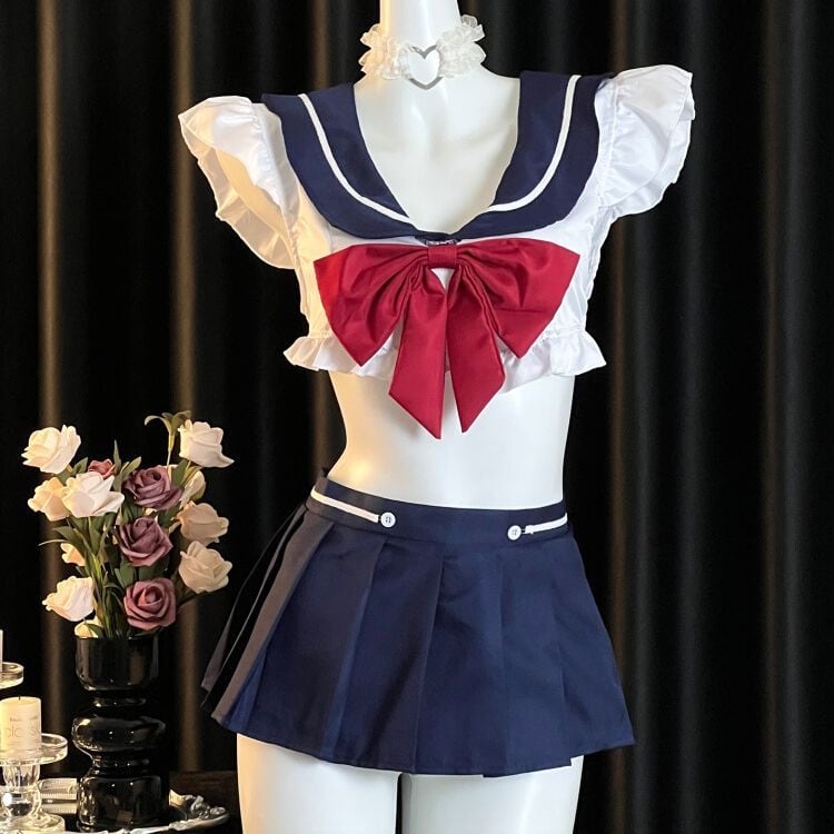 【即納】フリル へそ出し セーラー服 学生服 コスプレ衣装【 #[6022_13000]】【送料込み】【260404】
