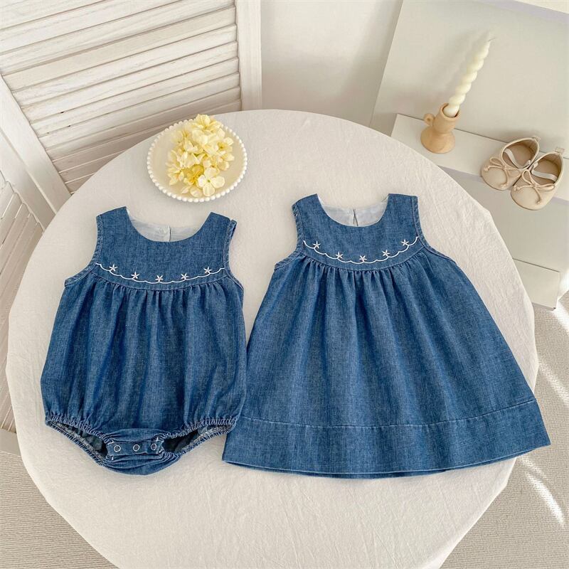 【海外からの取り寄せ】2026夏新作 子供服 姉妹服 デニム ノースリーブ ロンパース ワンピース 可愛い おしゃれ 刺繍 #[ckd1095536_19200]【送料込み】【260411】
