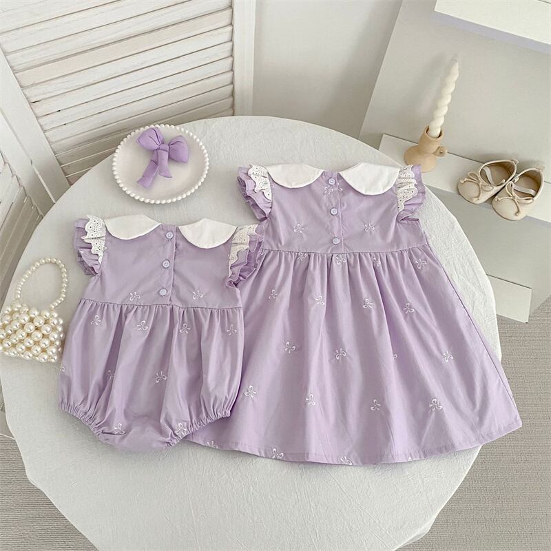 【海外からの取り寄せ】2026夏新作 子供服 姉妹服 フラッタースリーブ ロンパース ワンピース レース 可愛い リボン #[ckd1095532_20100]【送料込み】【260411】