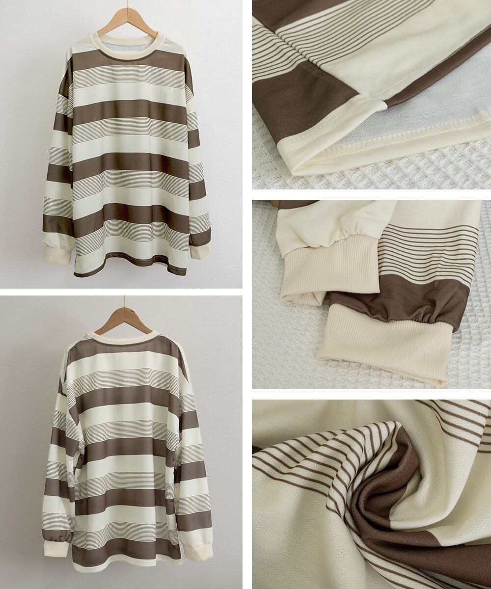 旬のオーバーサイズで、ゆったりとしたこなれ感のあるボーダー柄ロングスリーブTシャツ。