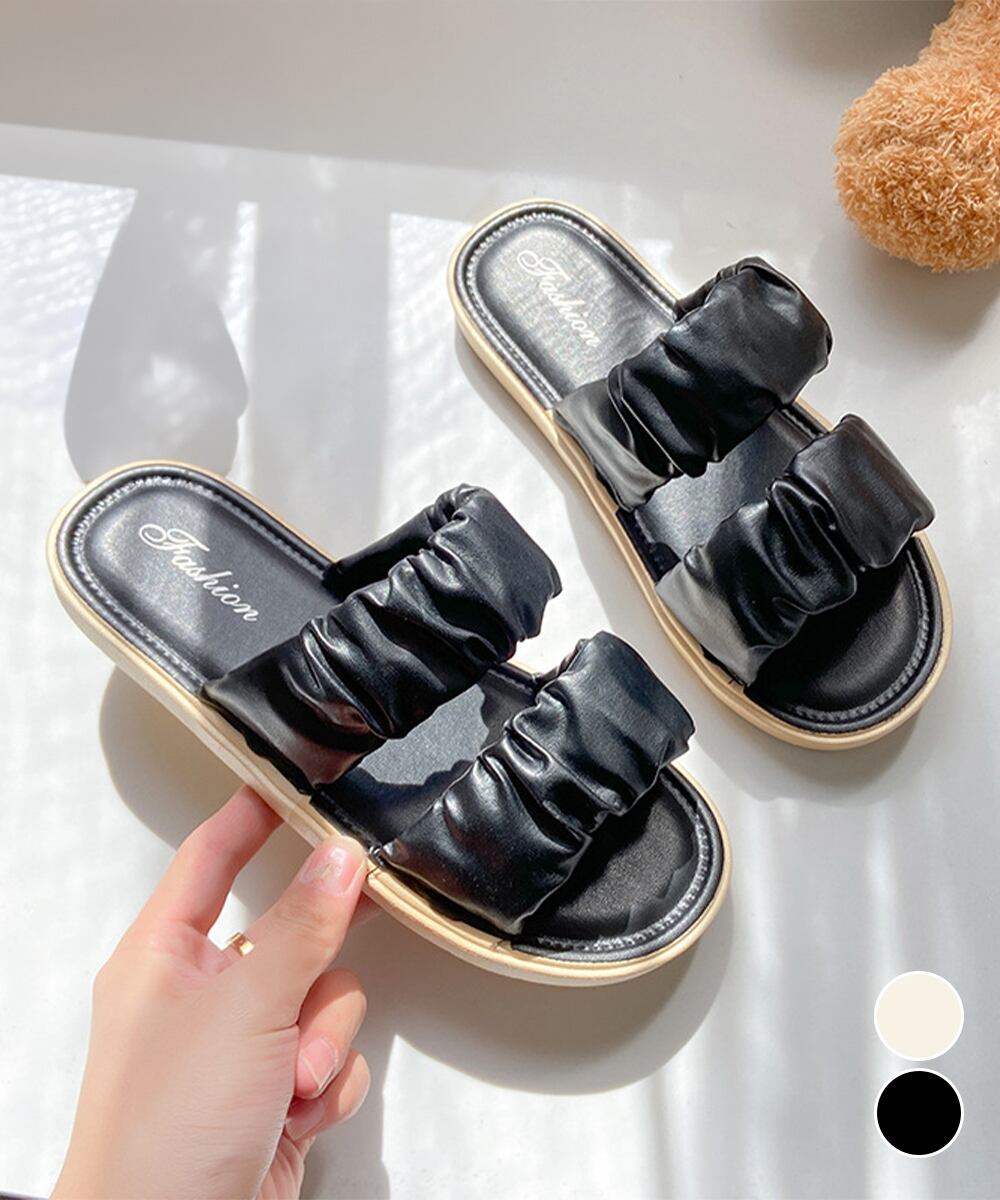 【日本倉庫からの発送】 スリッパサンダル レディース ギャザー #[99QGXY-001_15600]【送料込み】【260412】