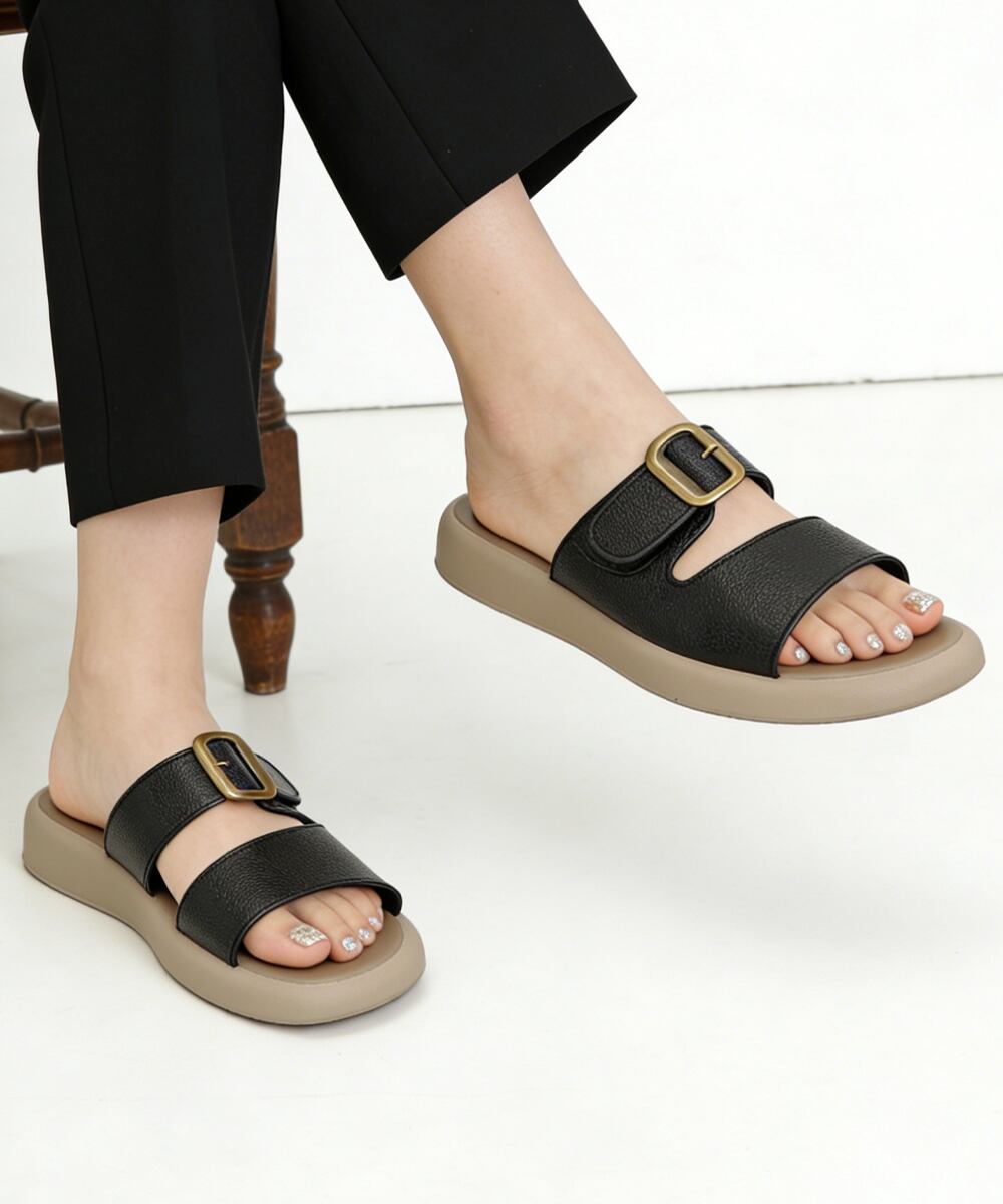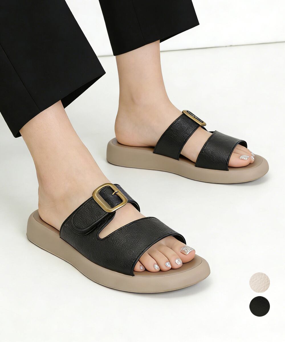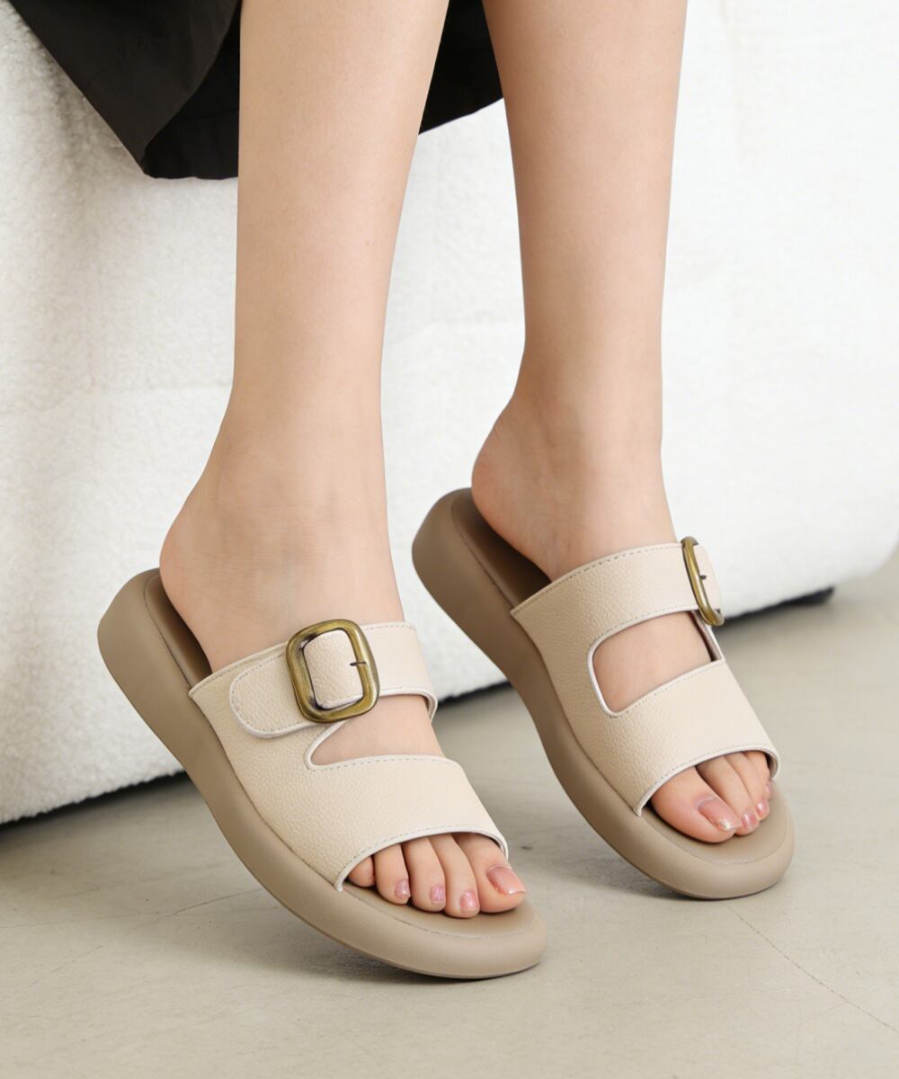 バックルデザインがアクセントになったフラットサンダル。
