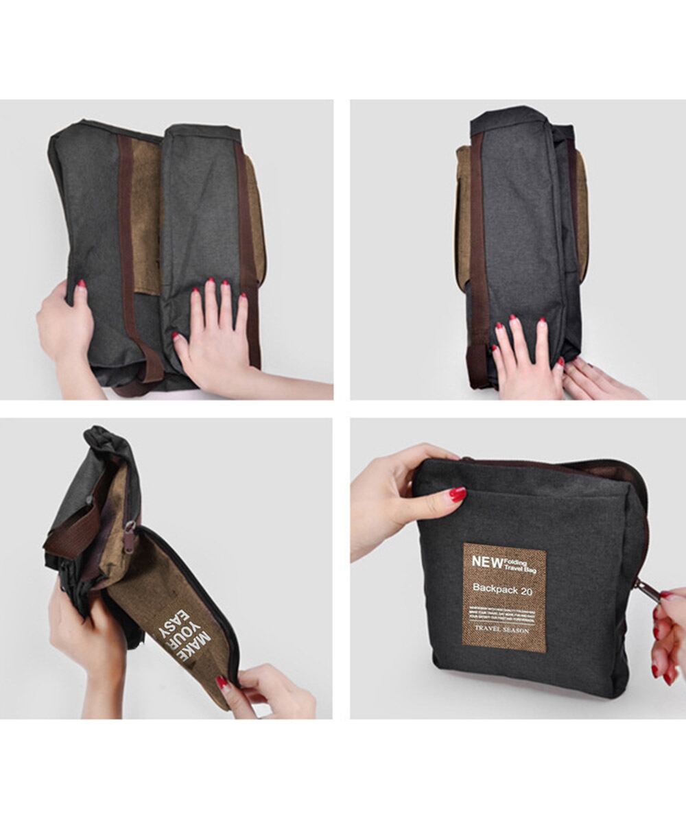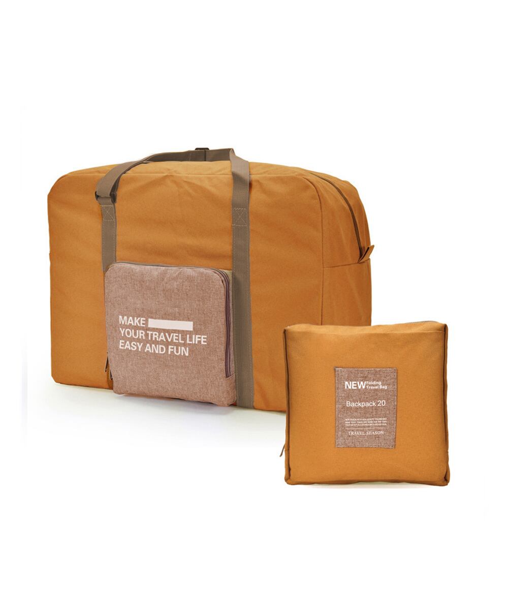 折りたたみ式でコンパクトに収納できるトラベルバッグ。