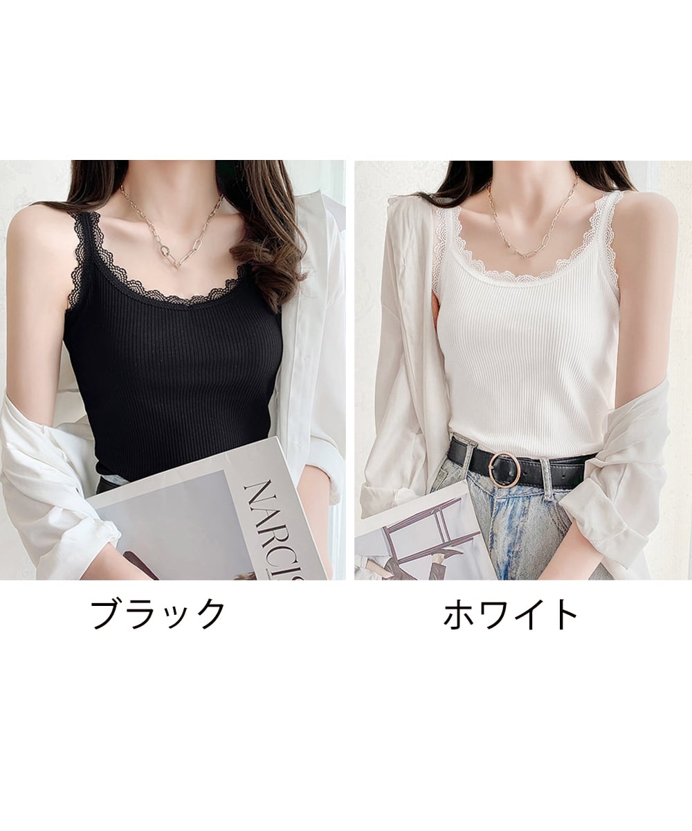 【日本倉庫からの発送】 レースキャミソール 重ね着 リブインナー #[77XF-019_11500]【送料込み】【260412】