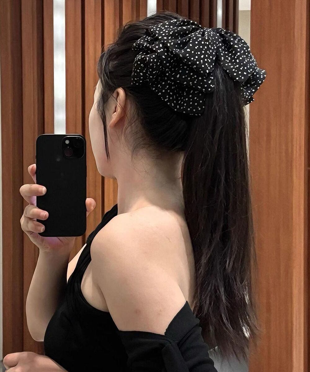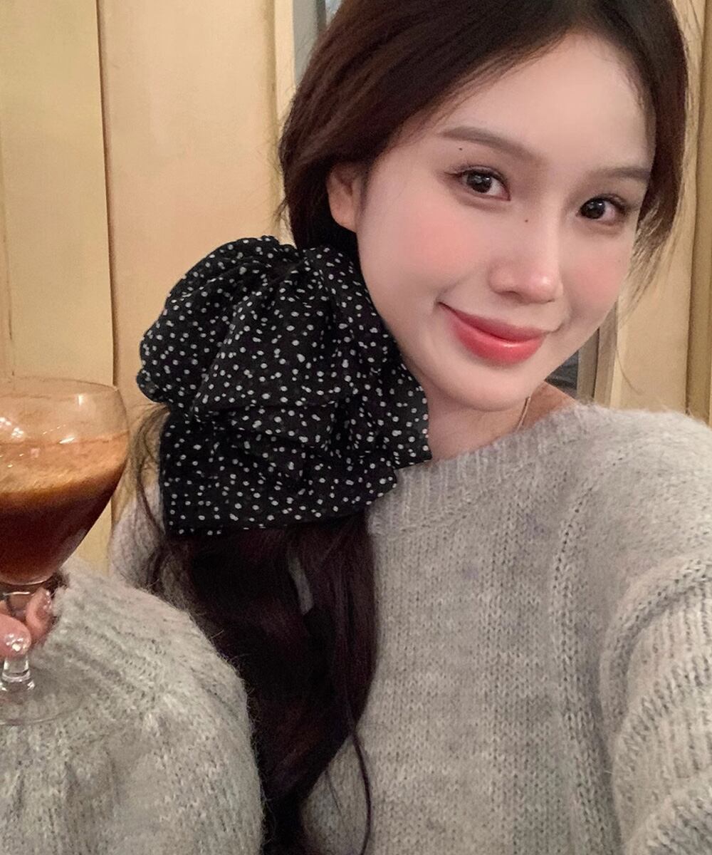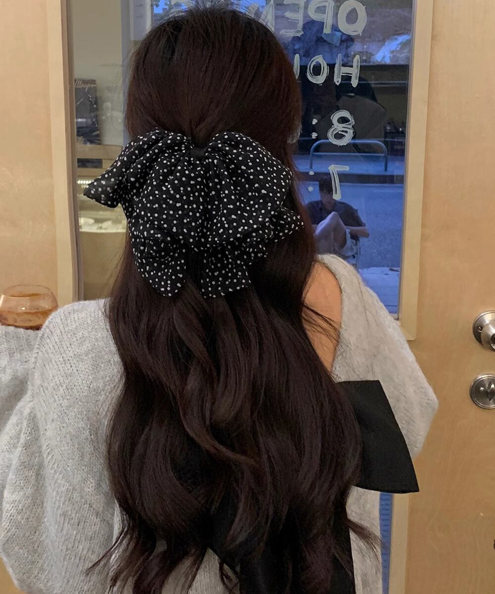 ヘアアクセサリー 水玉 大きめリボン ビッグリボン 韓国ファッション 大人ガーリー簡単 ヘアアレンジ ハーフアップ髪飾り