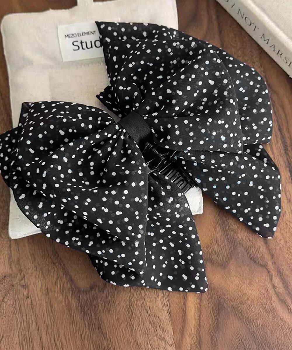 ドット柄の大きめリボンが目を引く、存在感のあるバンスクリップ。