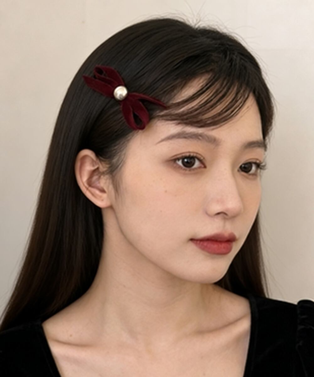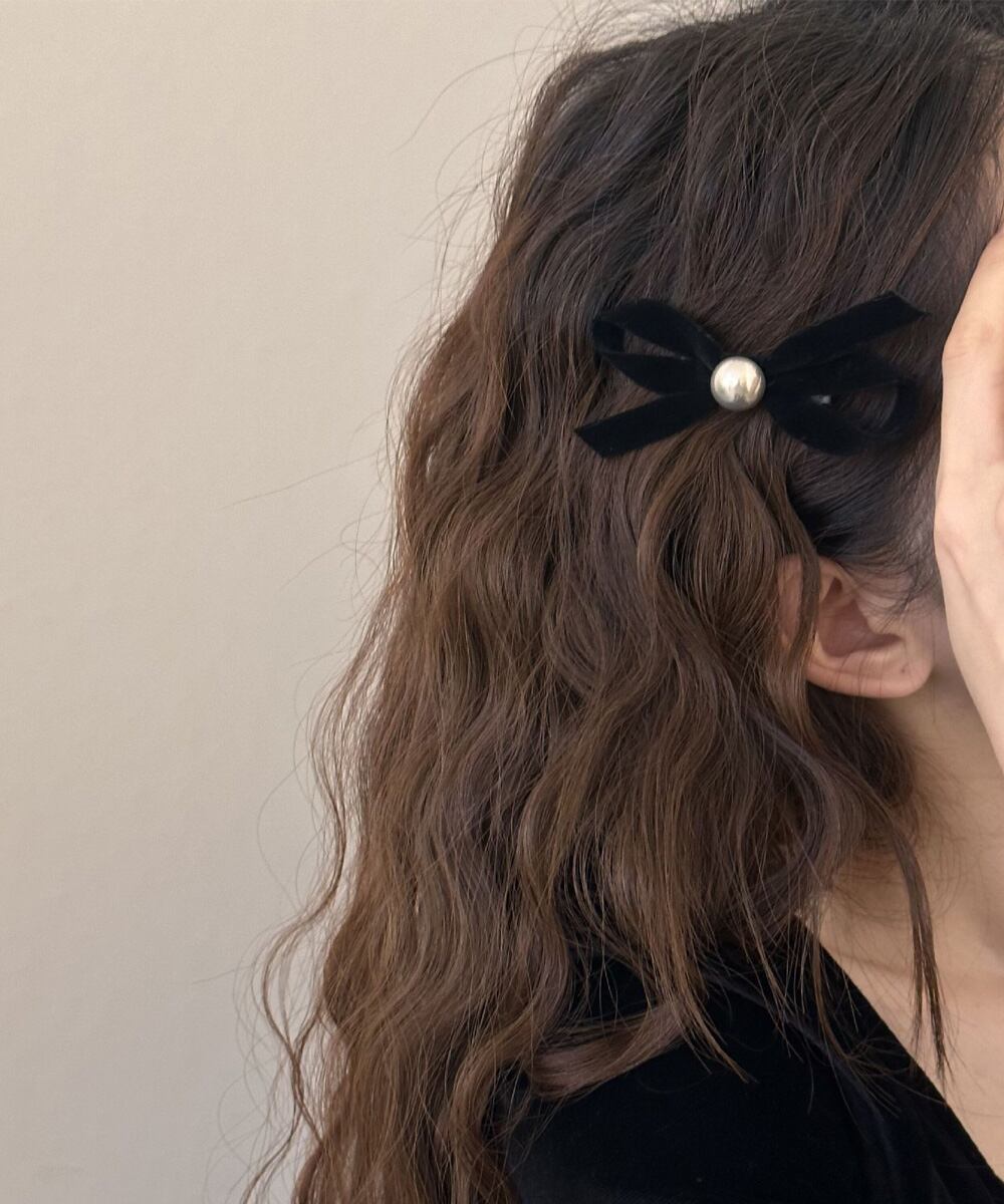 女性らしいシルエットが印象的なベロア調リボンヘアクリップ。