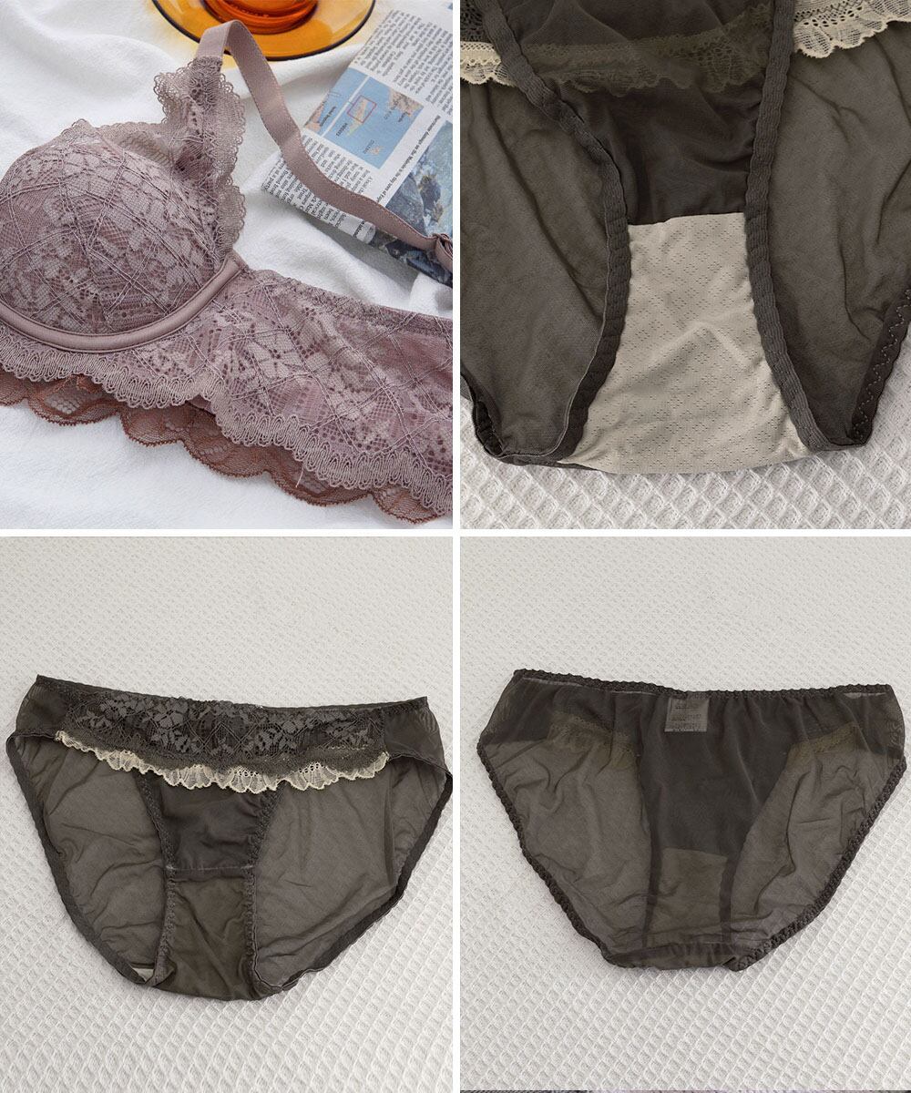 たっぷり繊細な花柄レースが可愛らしい、ブラ&ショーツの2点セット。