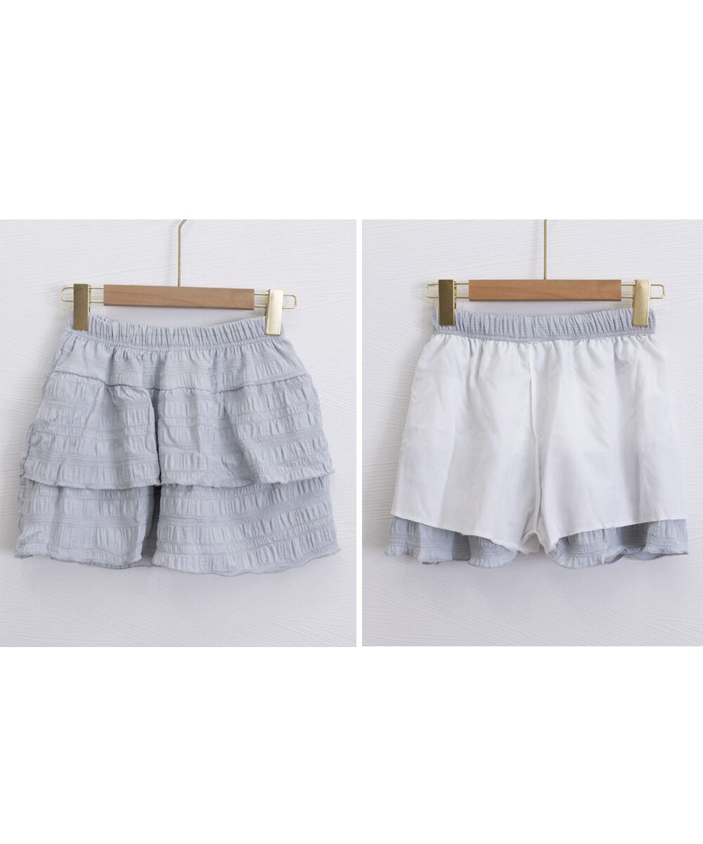 ティアードスカート インナーパンツ付き フリルスカート 着やせ チラ見え防止 ショート丈スカート ウエストゴム 可愛い