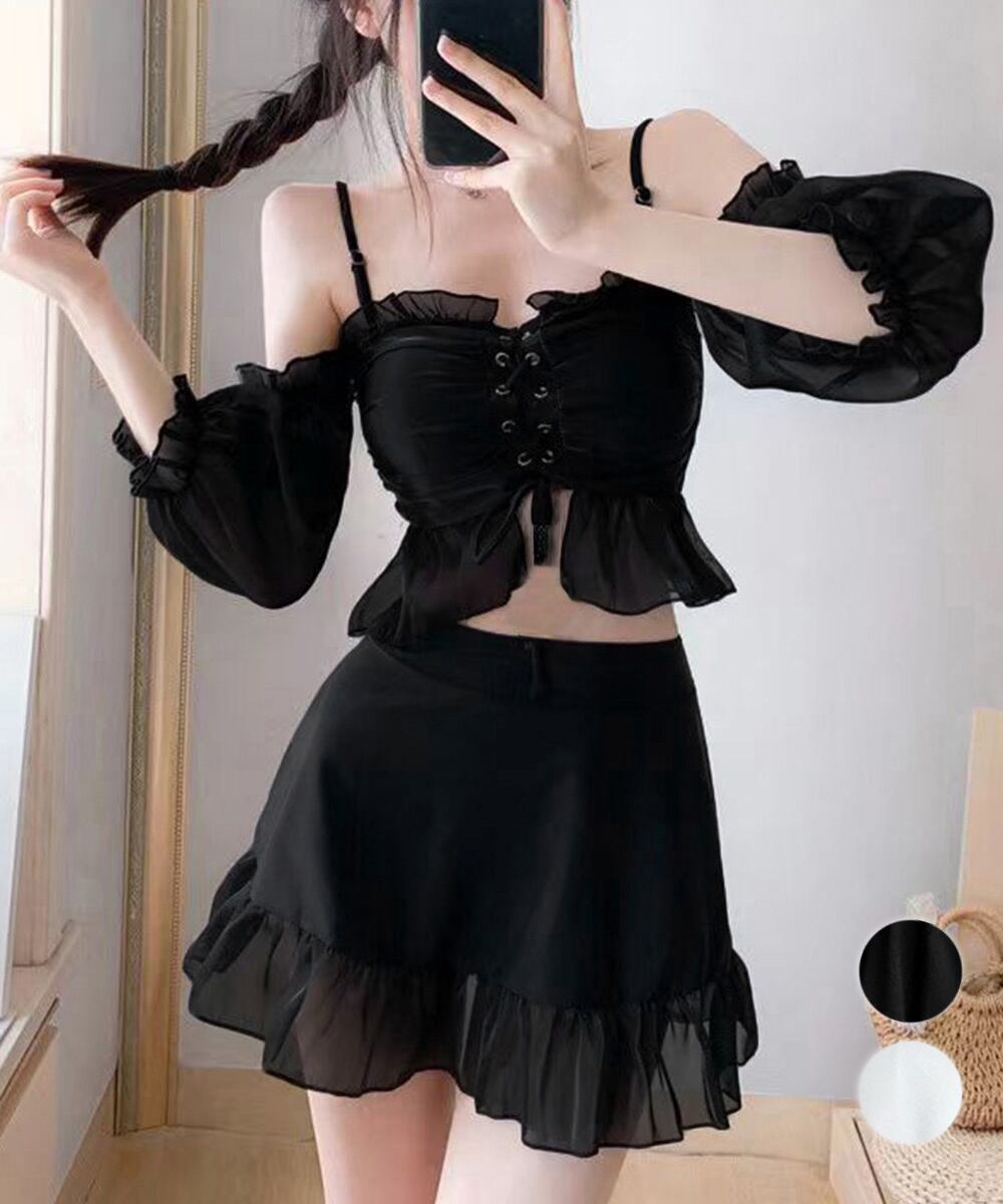 【日本倉庫からの発送】 オフショルダー水着2点セットレースアップ #[92HXFZ-001_21600]【送料込み】【260412】