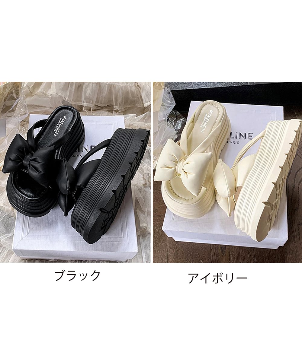 大きめリボンがアクセントになる、ボリュームソールの厚底サンダル。