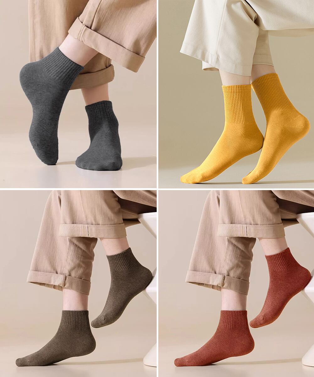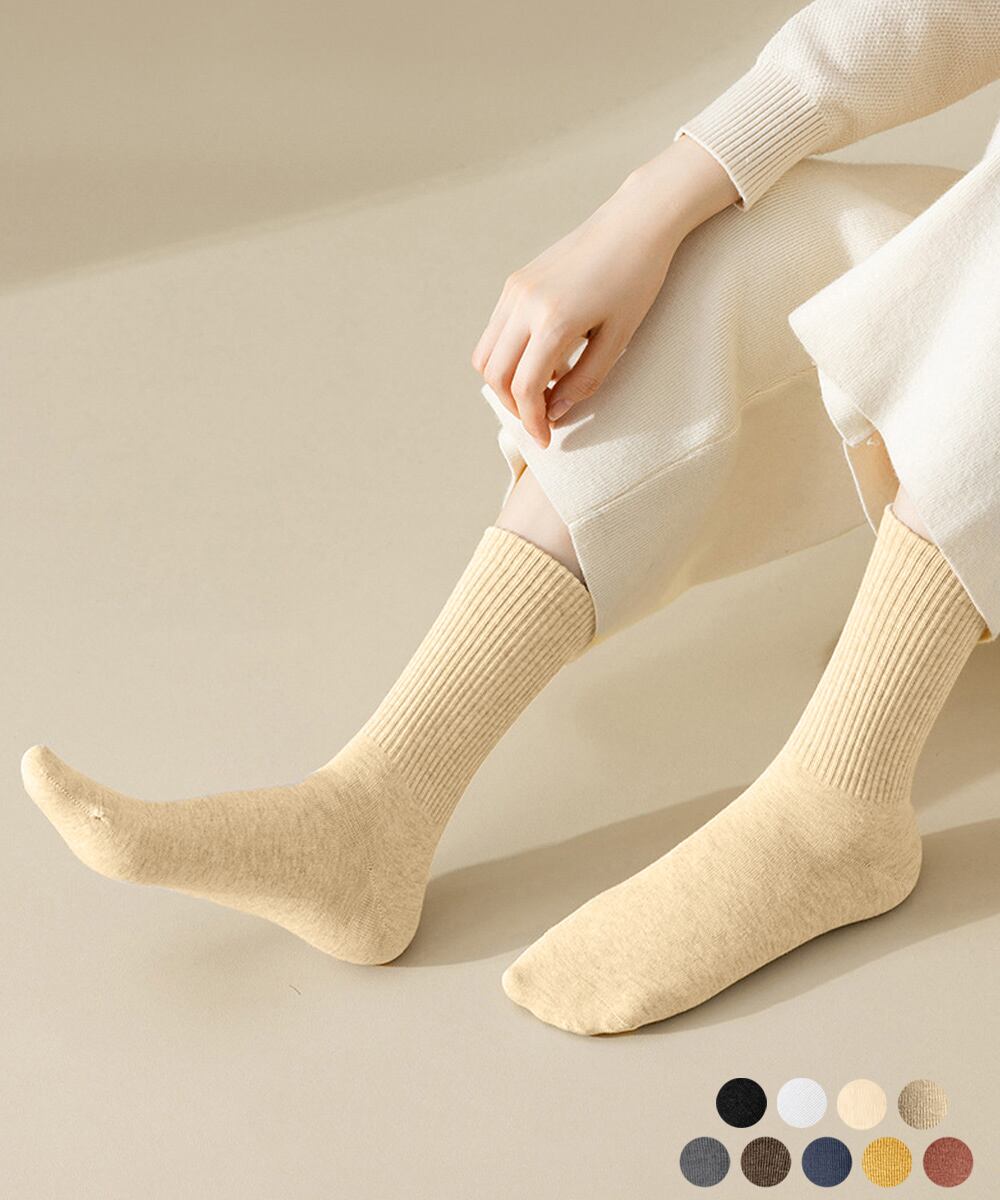 長さが選べるソックス レディース 締め付けない靴下無地 蒸れない靴下臭わない ミディアムソックス綿ポリ シンプルソックス