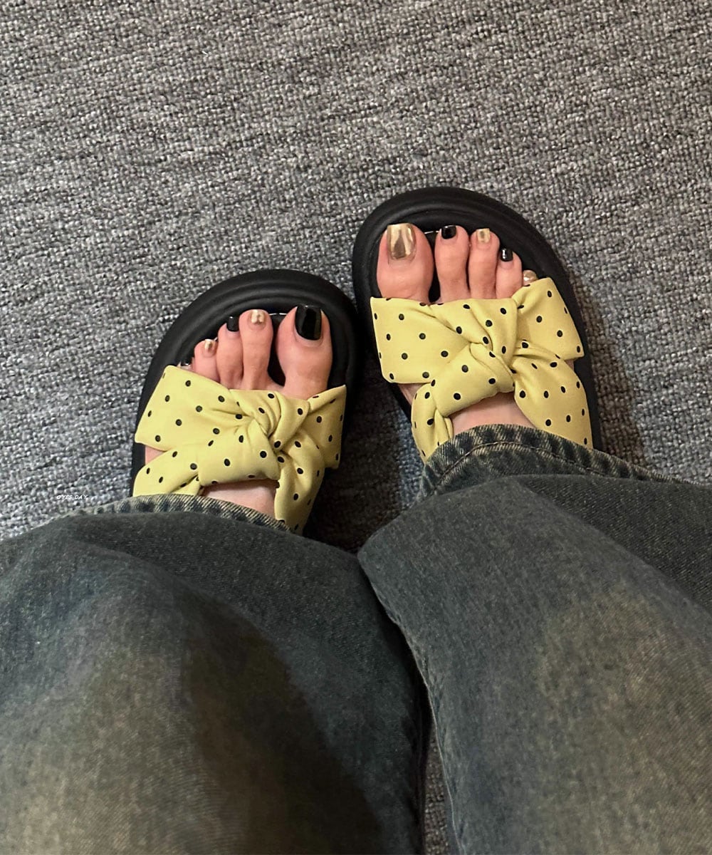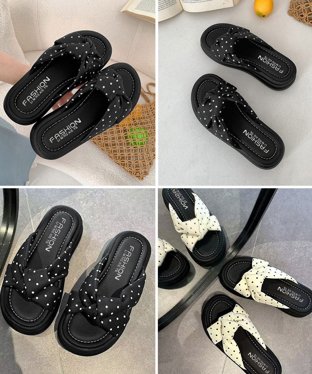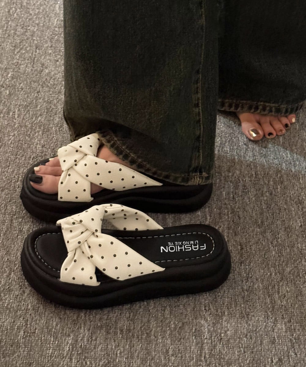 【日本倉庫からの発送】 ドット柄クロスリボン厚底サンダル美脚脚長 #[92JLDZSW-010_20800]【送料込み】【260412】