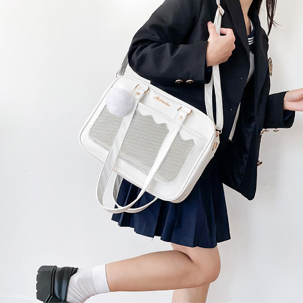 可愛い 2WAY スクールBAG 肩掛け PUレザー 斜め掛けかばん クリア 学生カバン トートバッグ通学バッグA4韓国