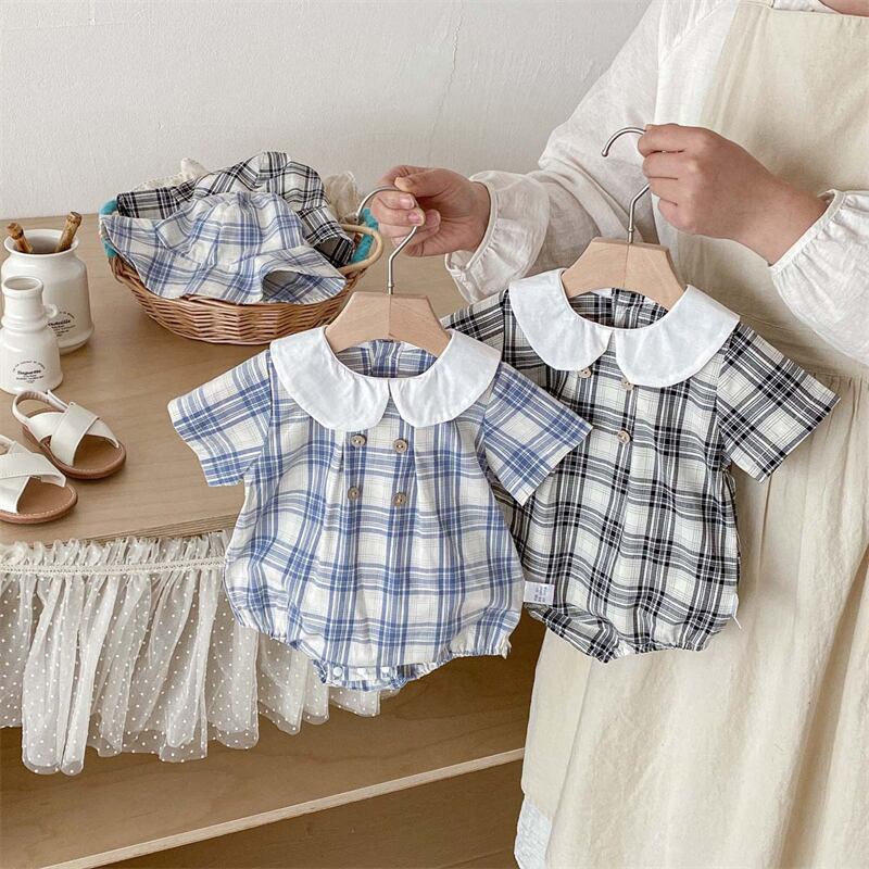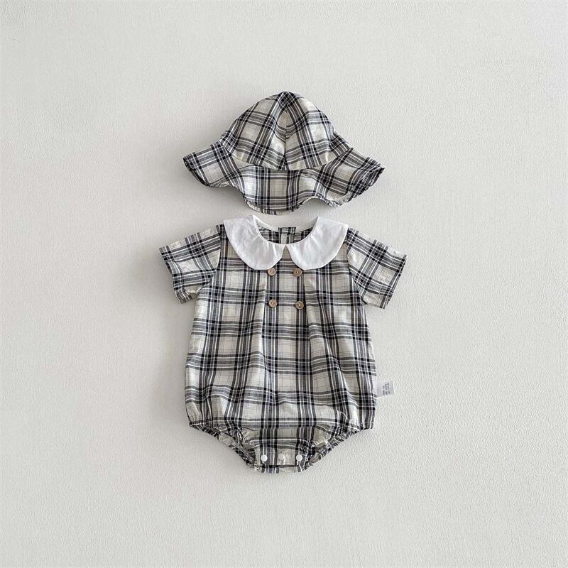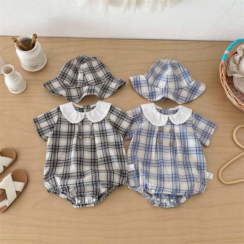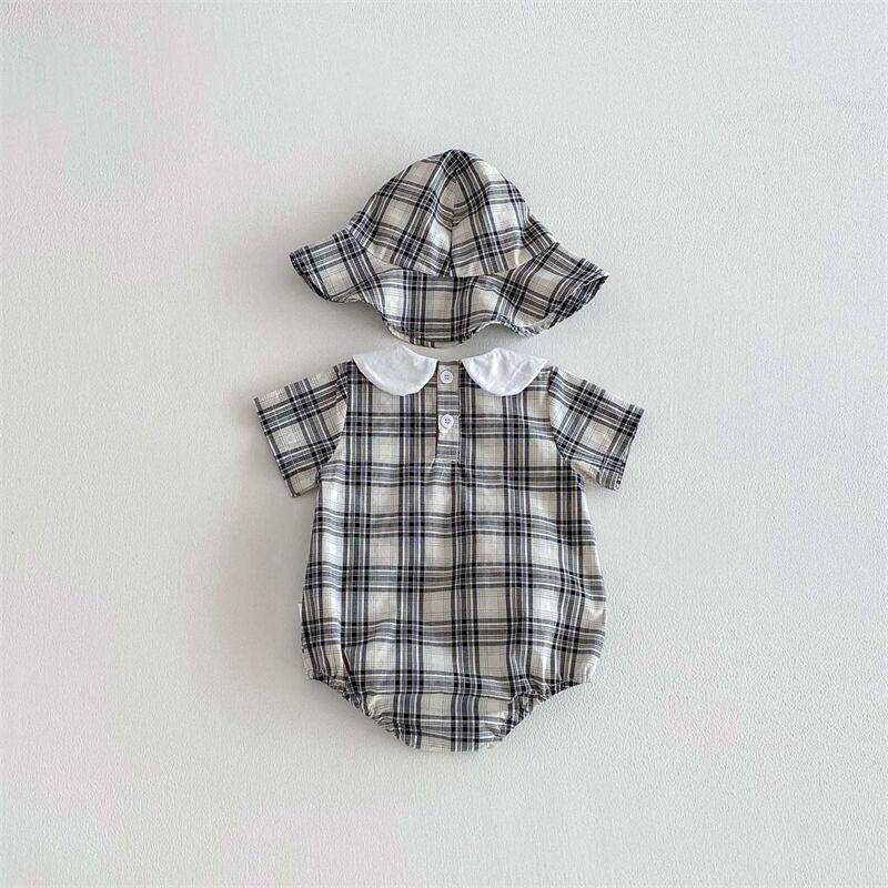 【海外からの取り寄せ】2026夏新作 子供服 新生児 チェック柄 帽子付き 半袖 ロンパース 可愛い ベビー服 カバーオール #[ckd1095546_15900]【送料込み】【260422】