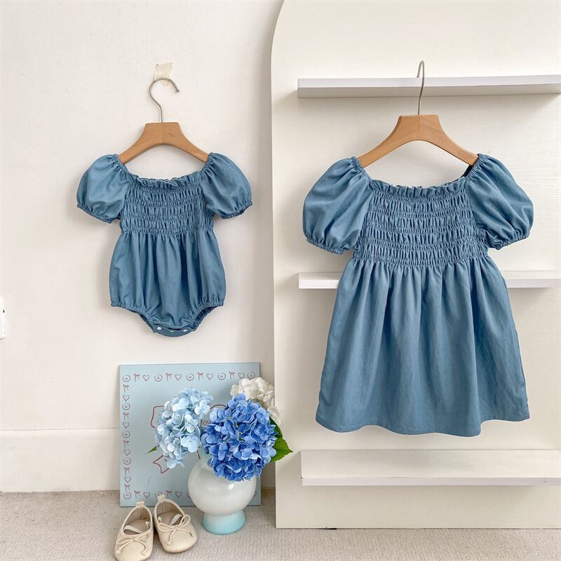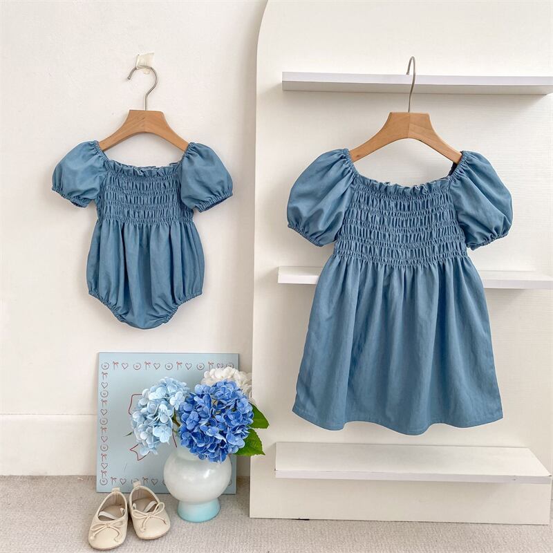 【海外からの取り寄せ】2026夏新作 子供服 姉妹服 女の子 デニム 半袖 ロンパース ワンピース 可愛い おしゃれ フリル #[ckd1095541_19700]【送料込み】【260422】