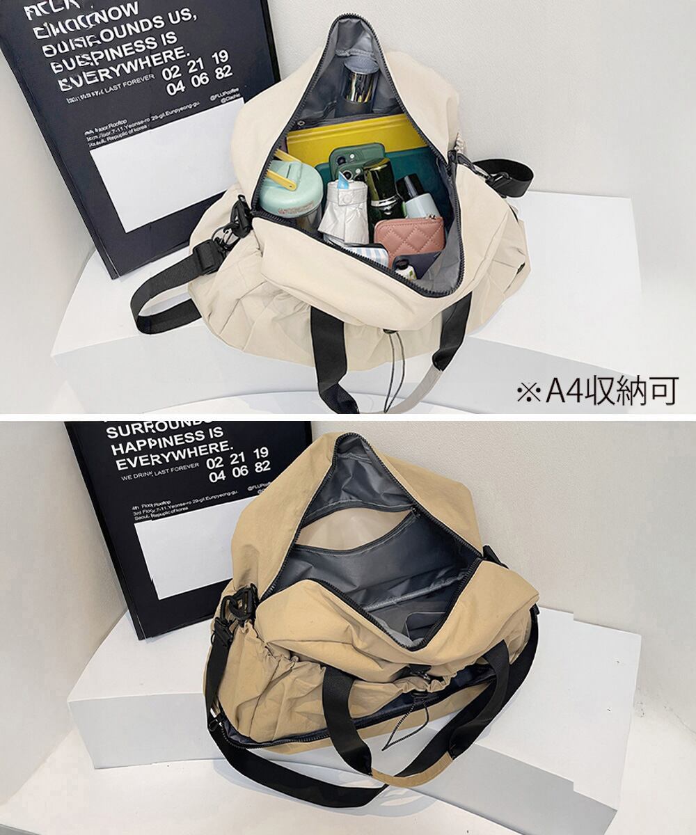 ジムやフィットネス、2〜3泊程度の旅行など、荷物多めの日に重宝する大容量タイプのボストンバッグ。