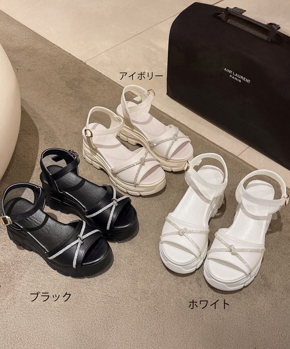 ボリュームソール靴 キラキラ夏サンダル 韓国風きれいめ脚長