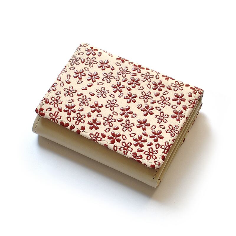 日本国産財布11 鹿革印伝■肉球柄&桜吹雪柄■極小財布 3色展開 かわいいコンパクトウォレット #[bztk-11idmw_100000]【送料込み】【260419】