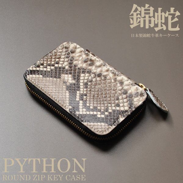 日本国産キーケース ダイヤモンドパイソンレザー6連ラウンドファスナーキーケース 日本製/錦蛇革×牛革 #[bztk-04prk_70000]【送料込み】【260419】