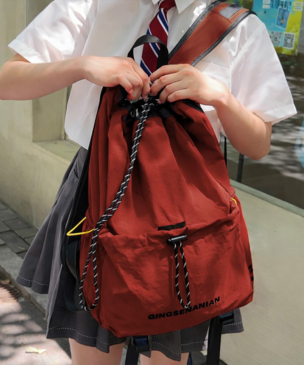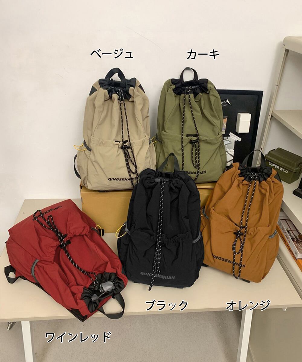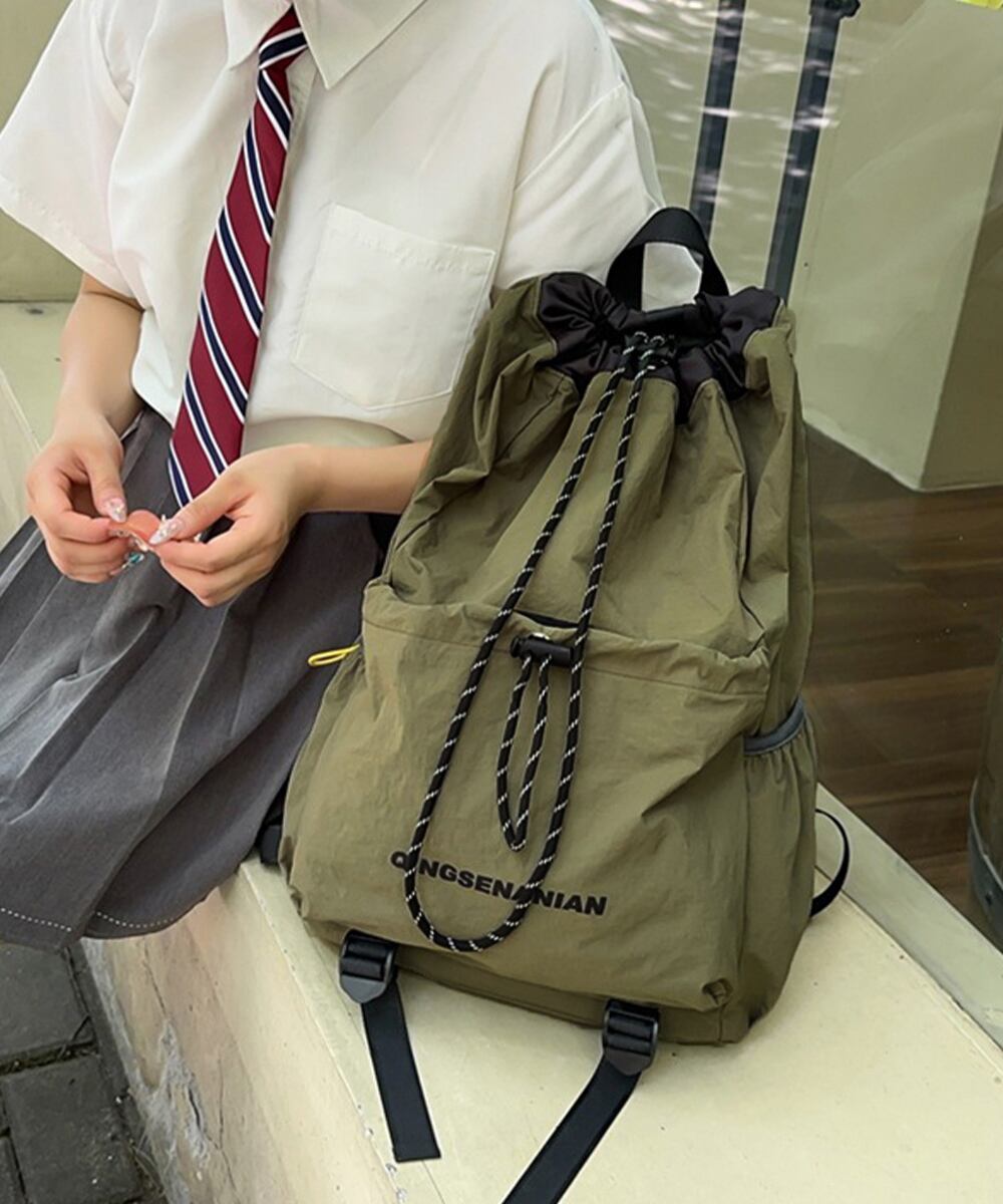 韓国風アウトドアナイロンバッグ軽量通勤通学リュックサック カジュアルナップサック ドローストリングバッグレジャーリュック