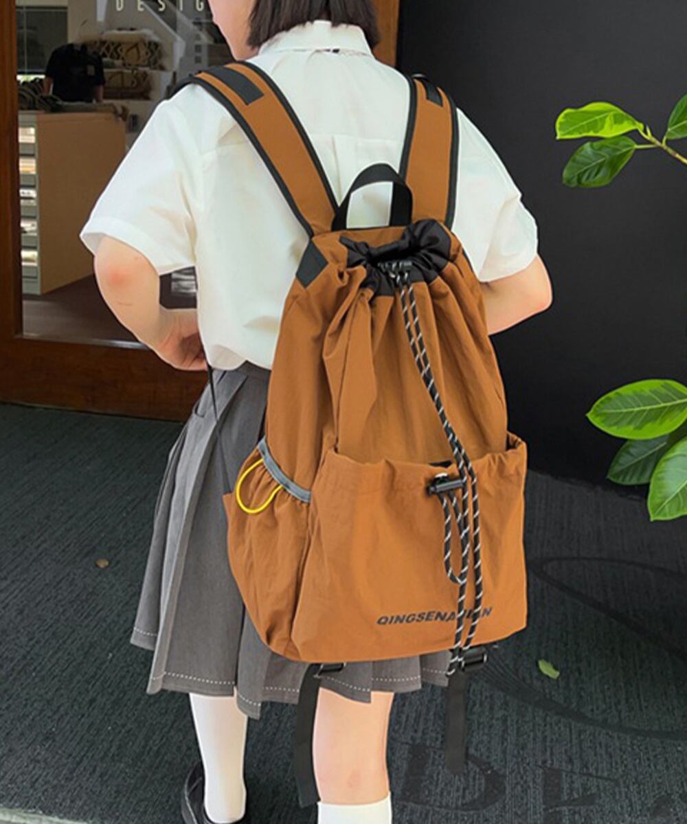カジュアルな雰囲気が魅力の巾着デザインバックパック。