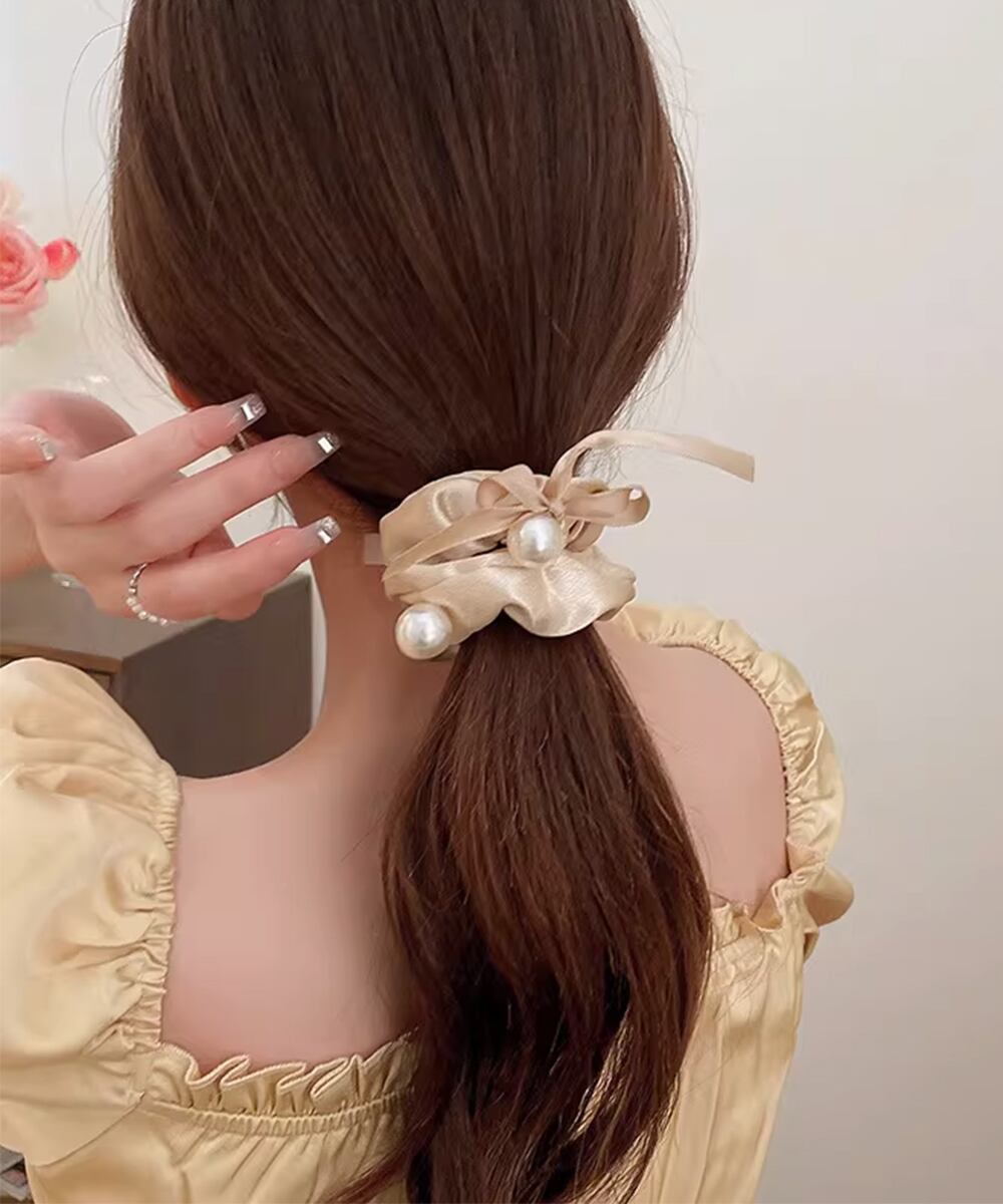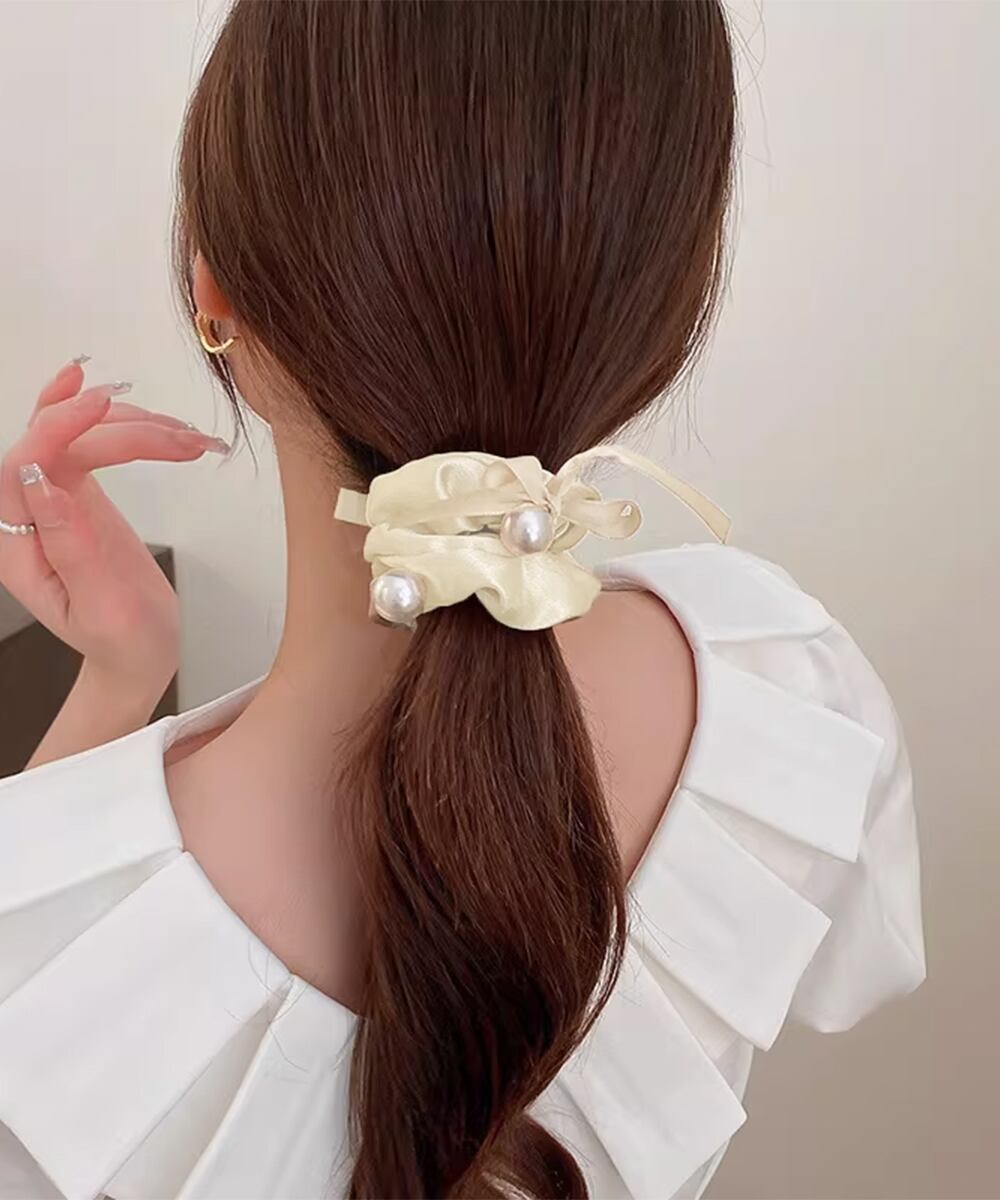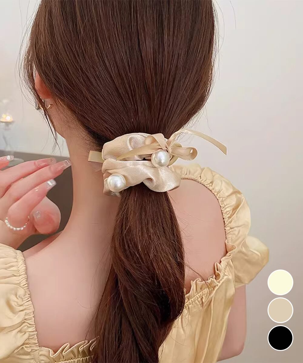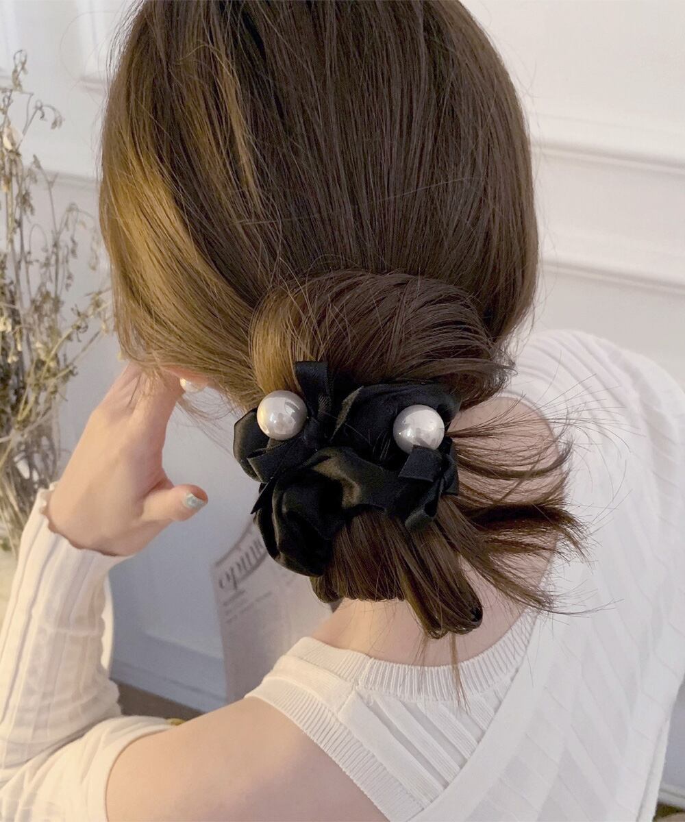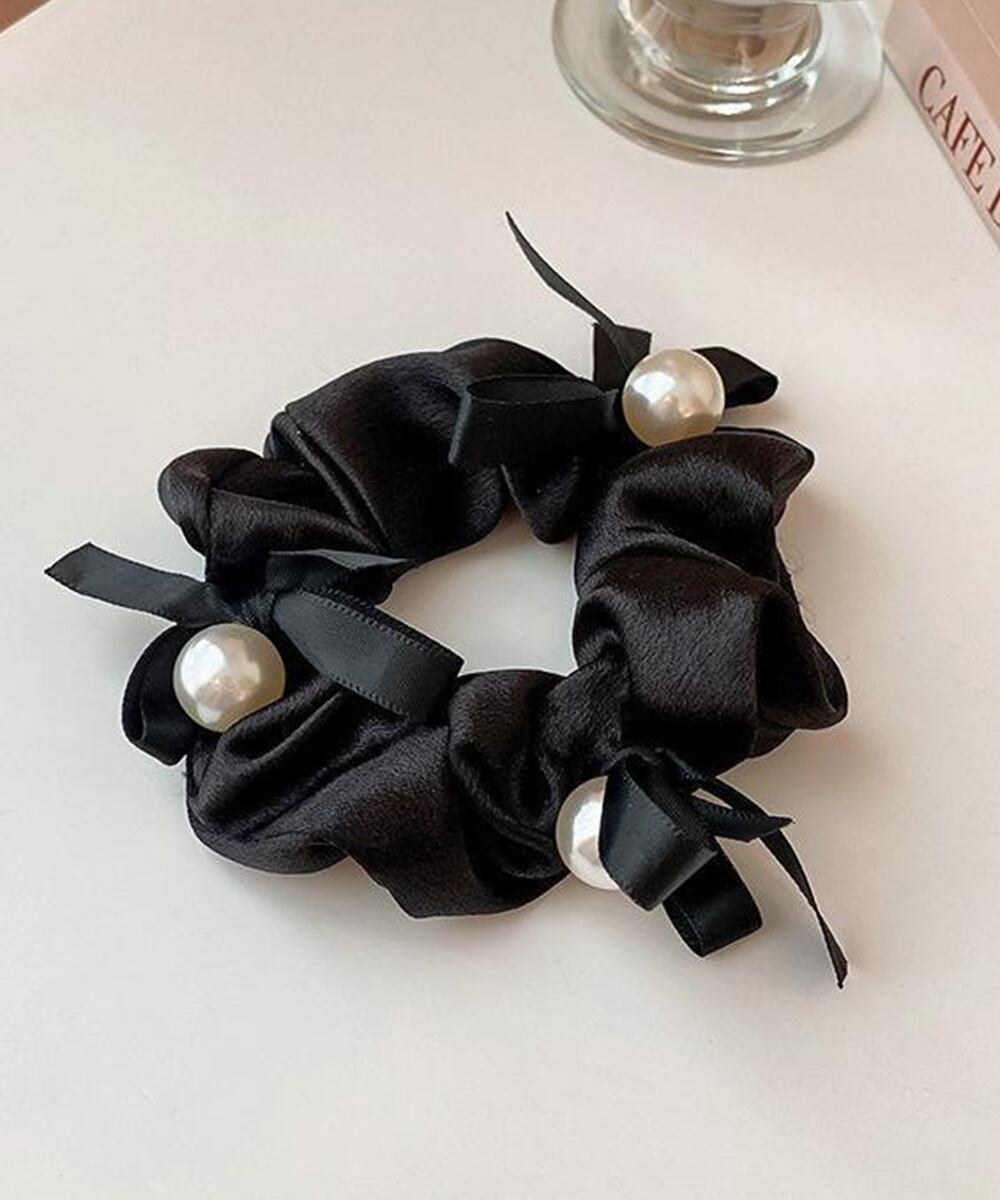上品でクラシカルな雰囲気が魅力のパール付きシュシュ。