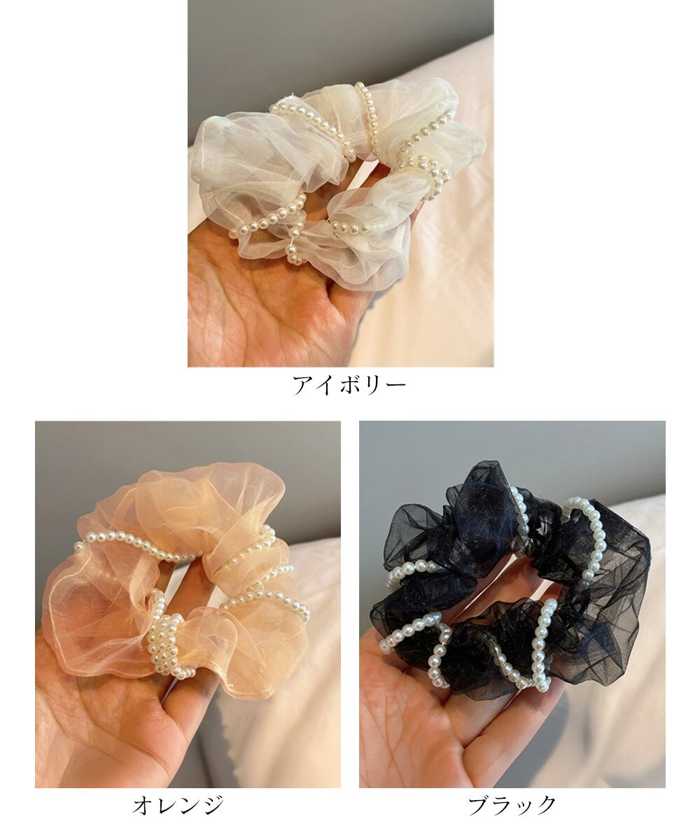 【日本倉庫からの発送】 オーガンジーシュシュ パール付き 韓国風 #[99XHSP-007_7400]【送料込み】【260419】