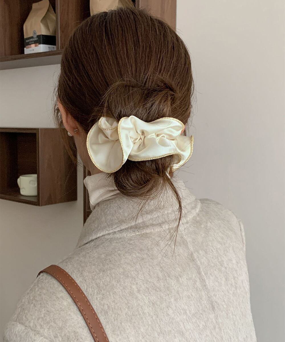 程よいボリューム感のあるデザインで、まとめ髪にさっと結ぶだけで華やかな印象に。