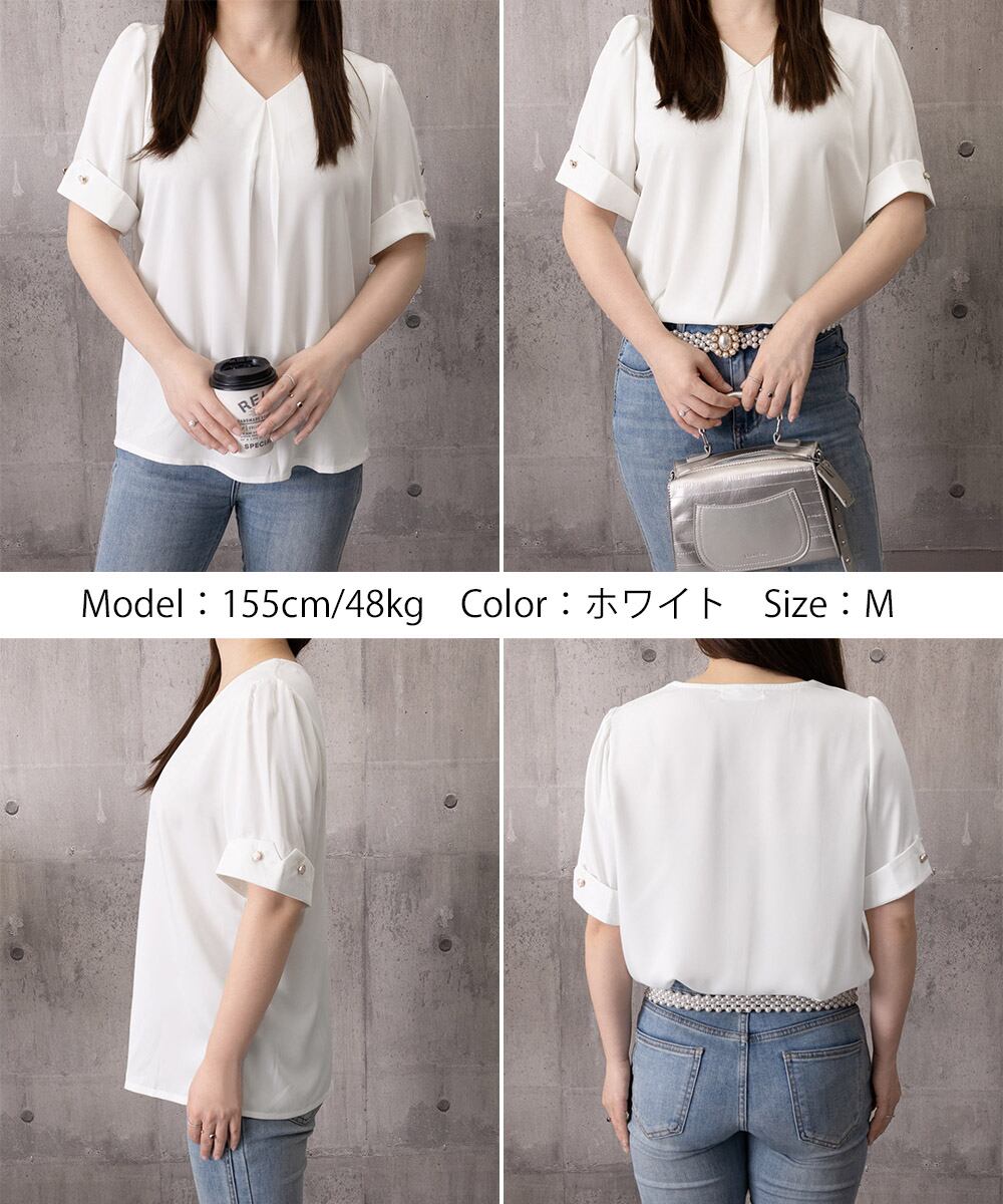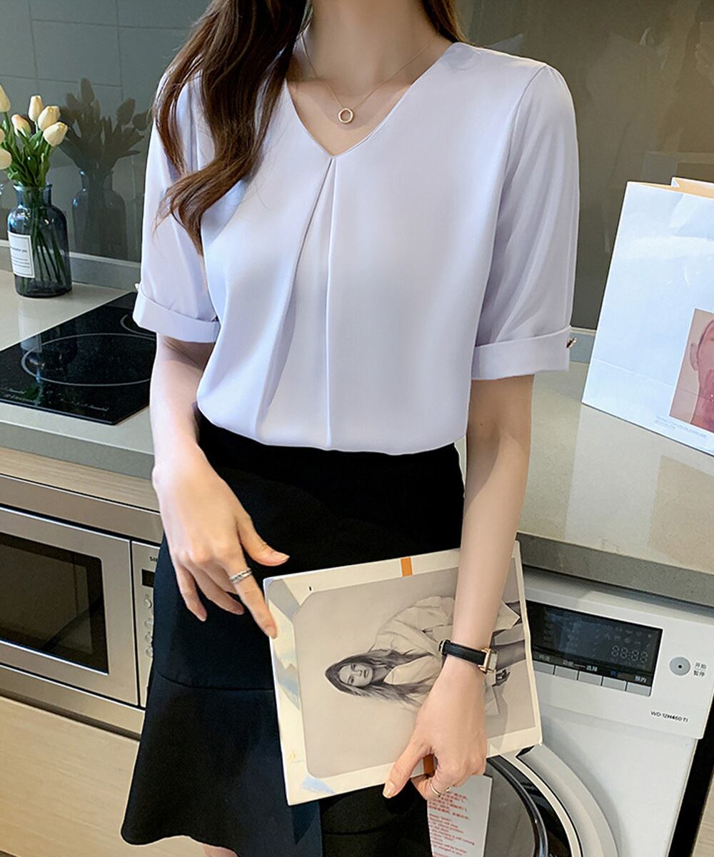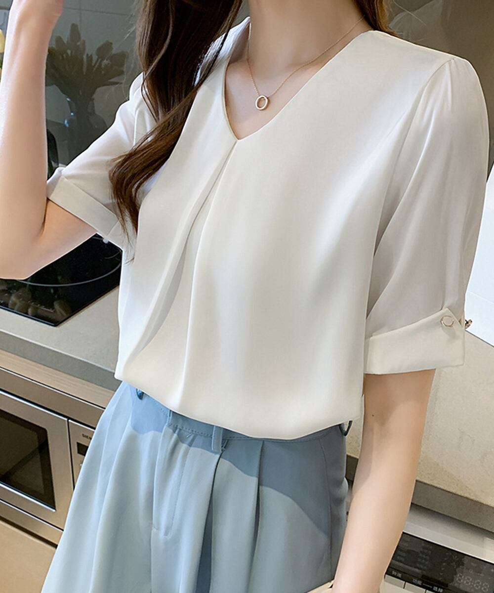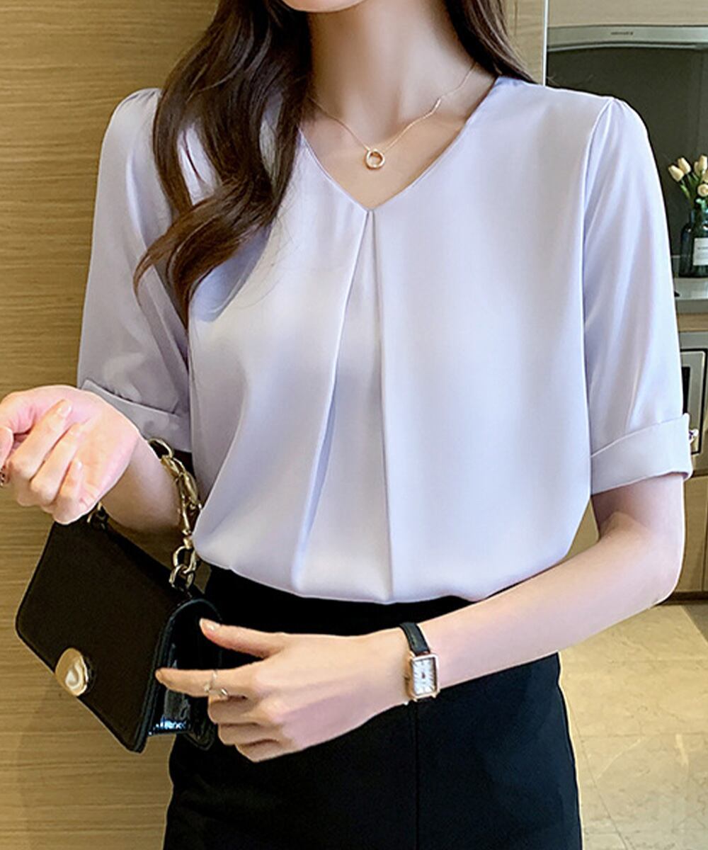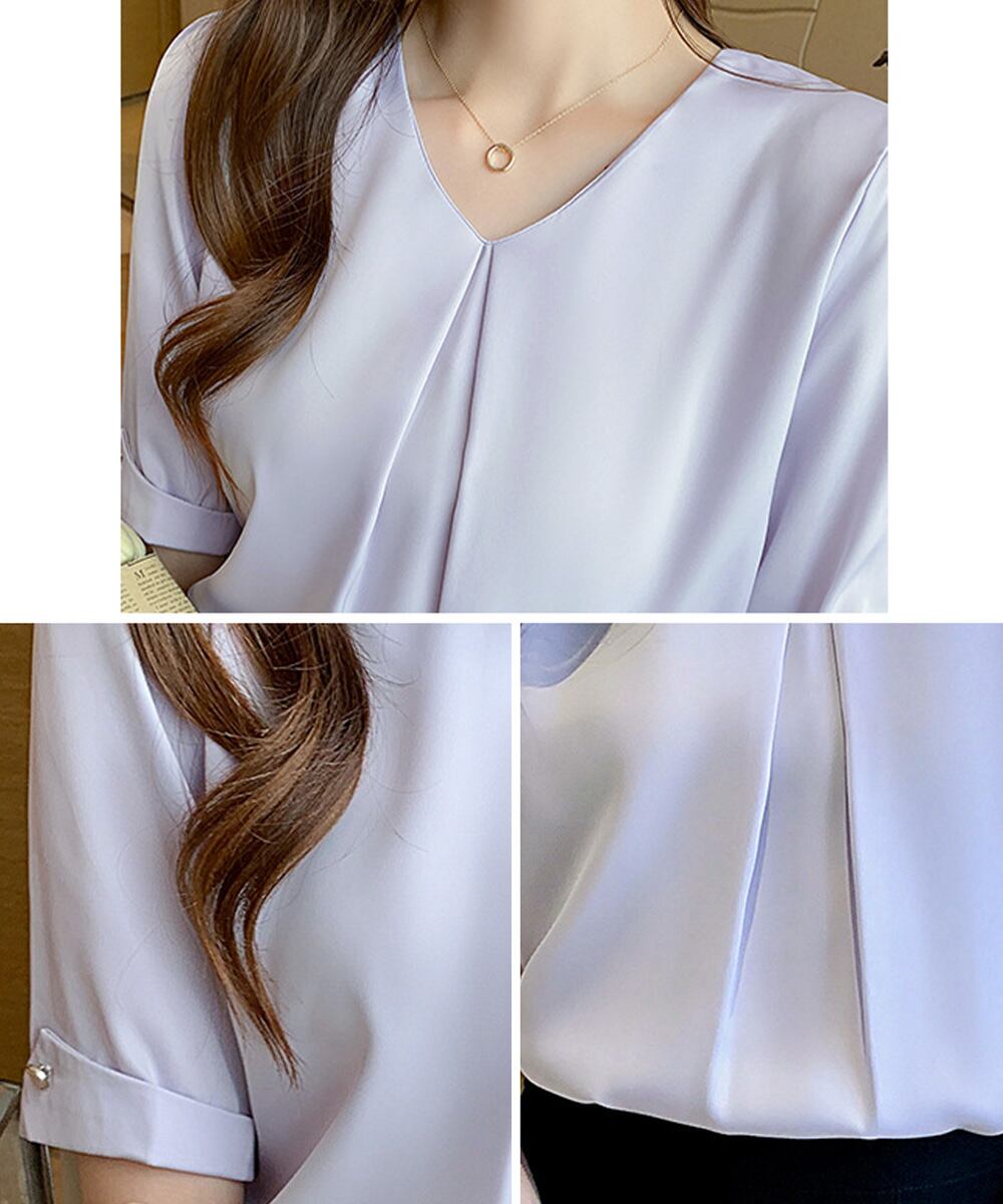 【日本倉庫からの発送】 半袖シャツブラウスレディースVネック夏服 #[90SHANGJ-002_23100]【送料込み】【260419】