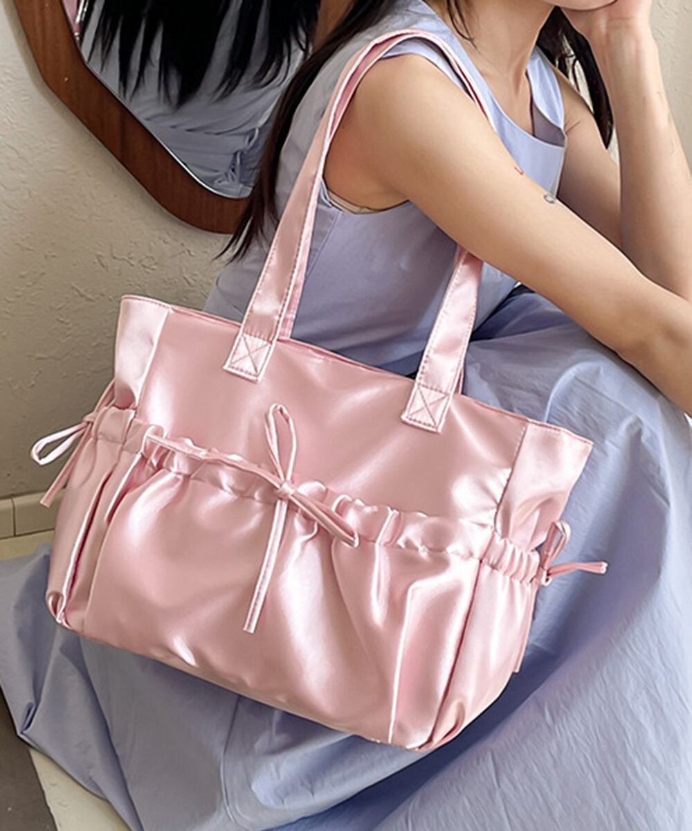 フリルギャザートート 2way 軽量 肩掛けカバン 大人可愛い ギャザーバッグ 柔らかい 韓国風 リボンbag 通勤通学