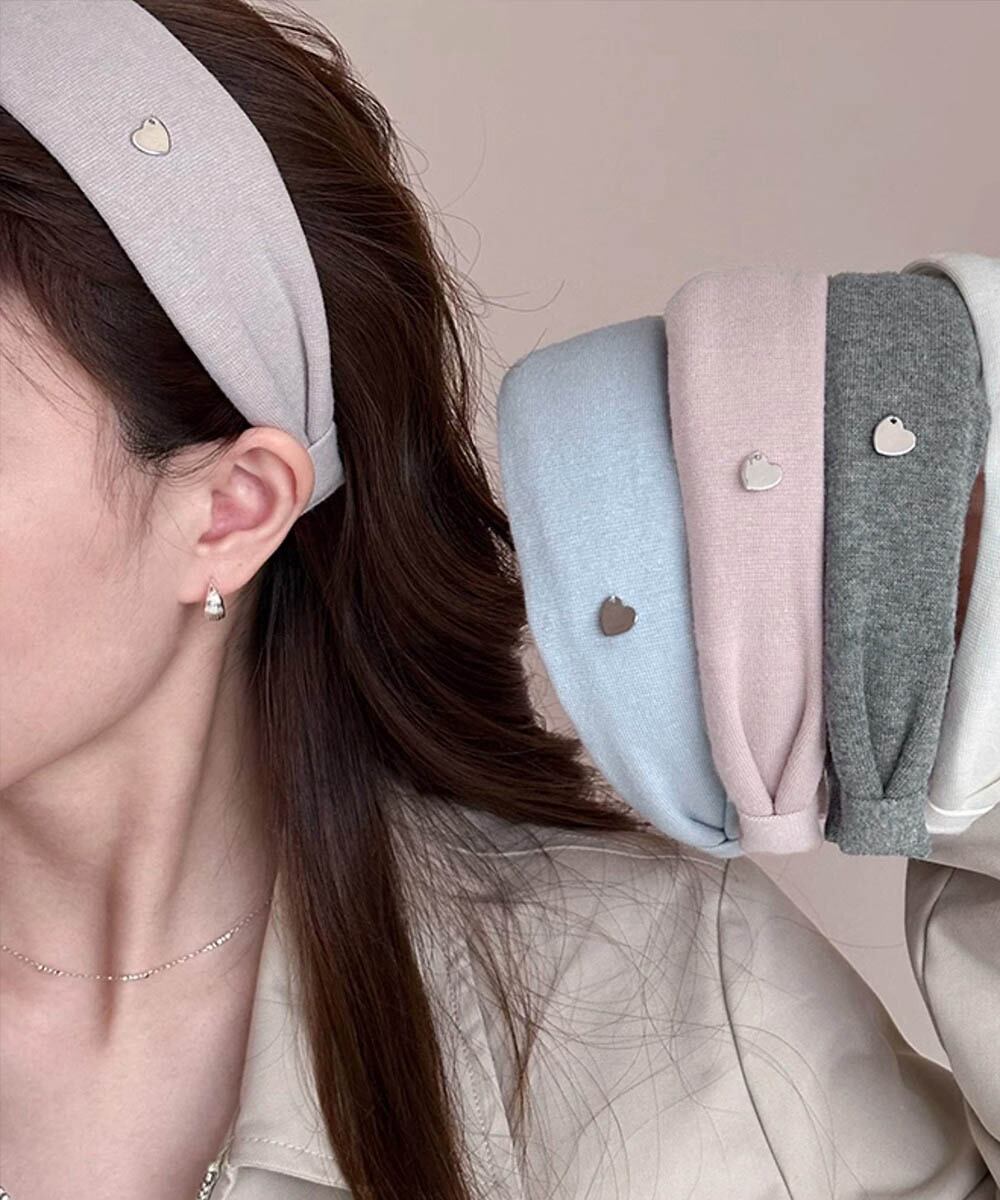 シンプルで上品なハートモチーフ付きヘアバンド。