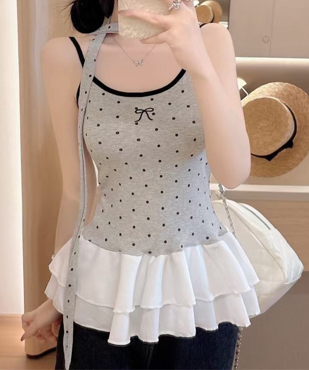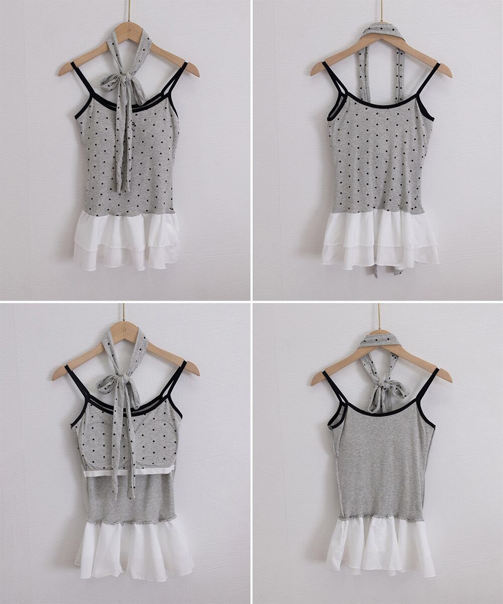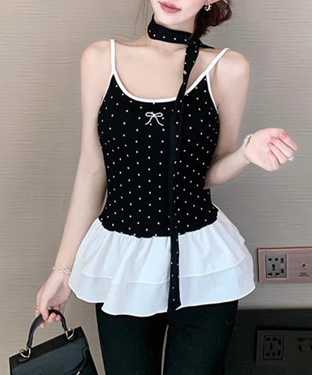 【日本倉庫からの発送】 ドット柄キャミソール チョーカー付き夏服 #[24TPS-078_16200]【送料込み】【260419】