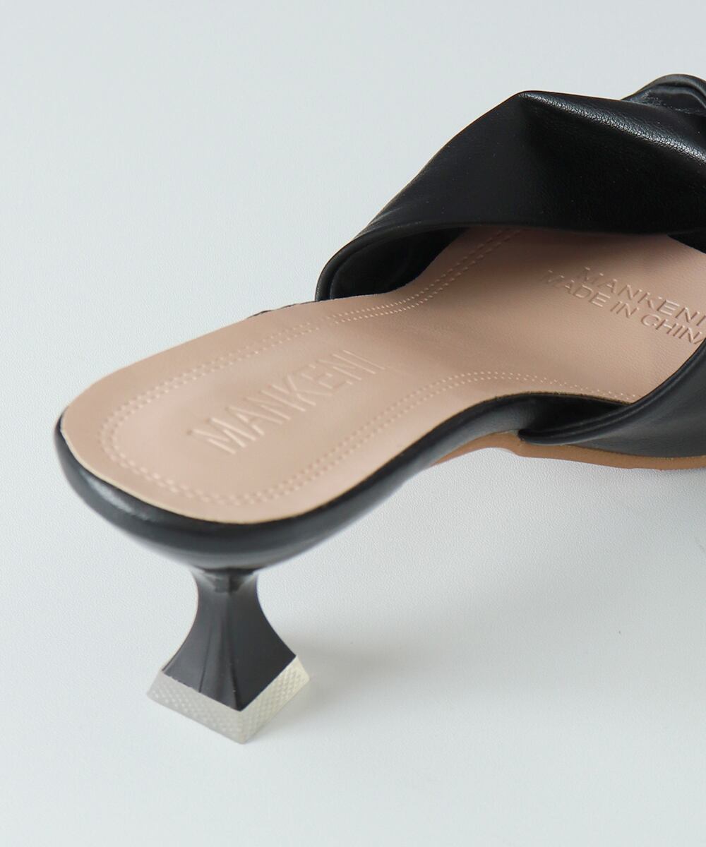 ねじりデザインがアクセントになった、シルエットがきれいなヒールミュールサンダル。